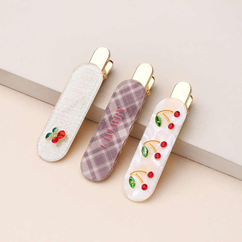 3.  سنجاق پترن گیلاس: پوشیده از چاپ‌های گیلاس ریز که انرژی و شادابی را به موهای شما منتقل می‌کند.