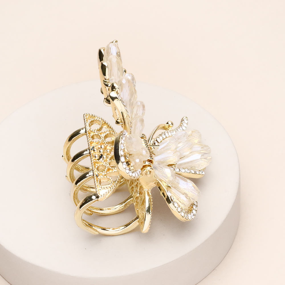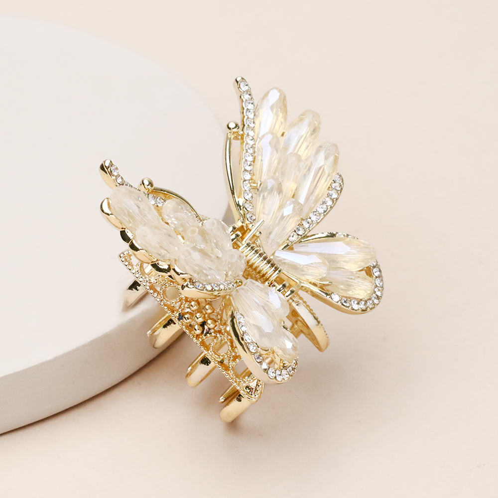 کلیپس بال پروانه نگین کرم با طرح خاص بال پروانه و درخشش نگینهای کرم، استایلی بسیار شیک به موهای شما میبخشد. ترکیب طراحی ظریف بالها با رنگ جذاب نگینها، این اکسسوری را به انتخابی خیرهکننده برای مجالس تبدیل کرده که در عین داشتن فنری محکم، جلوهای لوکس و متمایز دارد.