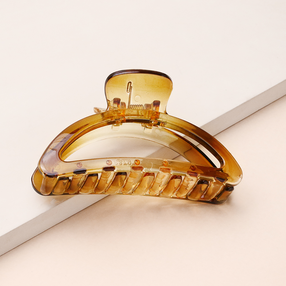 کلیپس بیضی توخالی قهوه ای روشن با طراحی مدرن و رنگ عمیق و خیره‌کننده‌اش، انتخابی جسورانه و خاص برای تکمیل استایل شماست. ساختار توخالی و هندسی این کلیپس، جلوه‌ای سبک و متفاوت به موها می‌بخشد و رنگ قهوه ای روشن آن، گرمای مجذوب‌کننده‌ای دارد که به راحتی با لباس‌های مختلف ست می‌شود و به ظاهر شما اصالت و جذابیت می‌افزاید