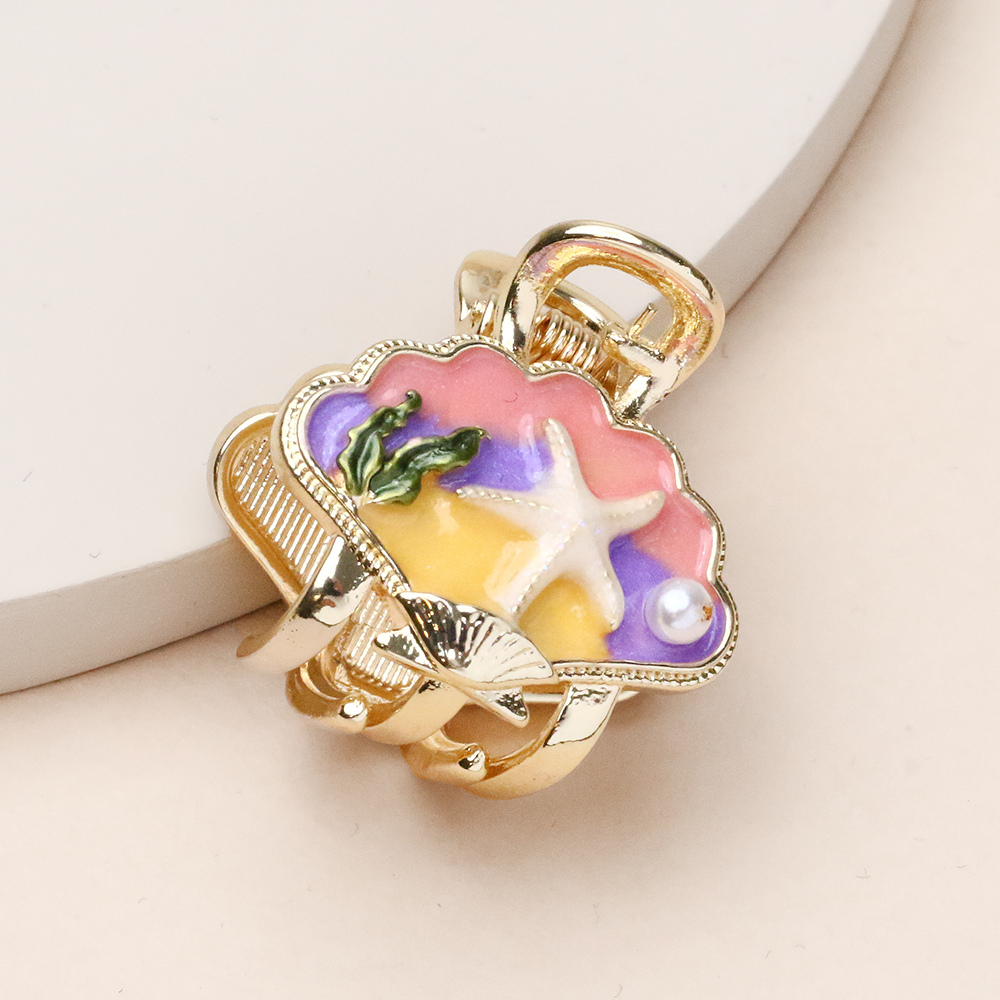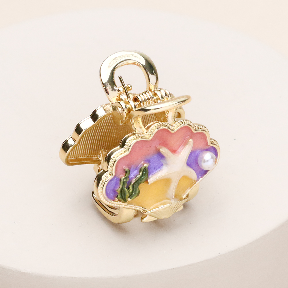 کلیپس ریز بنفش زرد با ترکیب رنگ‌های زنده و شاد در کنار ستاره‌ سفید، حال‌و‌هوایی کاملاً فانتزی و پرانرژی دارد. تضاد رنگی جذاب و ابعاد کوچک این کار، آن را به انتخابی عالی برای تزئین مو، به‌ویژه برای استایل‌های کژوال و دخترانه تبدیل کرده است که به سادگی جلوه‌ای بامزه و متفاوت به موهای شما می‌بخشد.