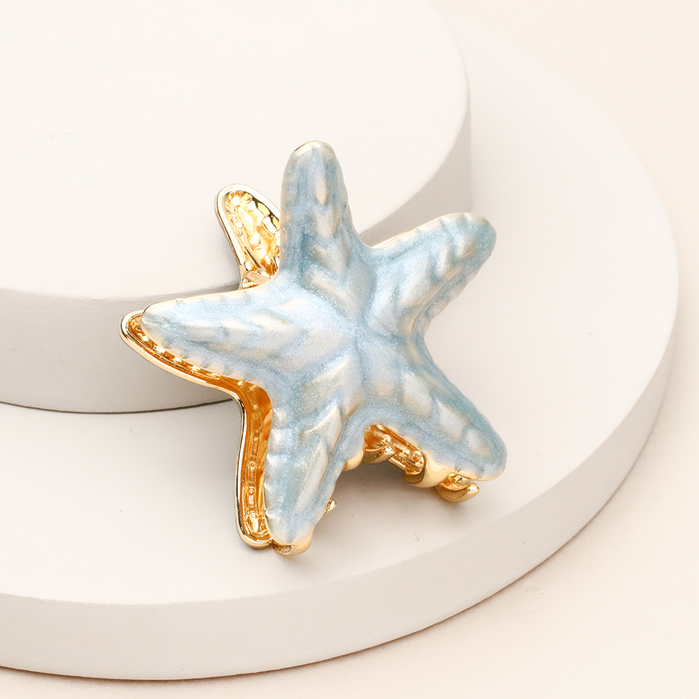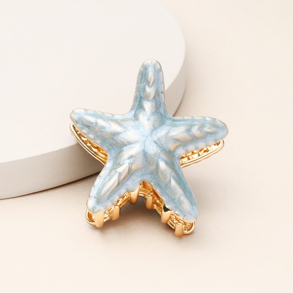 کلیپس ستاره دریایی آبی فانتزی با طرح ستاره دریایی و رنگ آبی صدفی، انتخابی رویایی برای طرفداران استایلهای خاص و تابستانی است. بدنه فلزی آن با آبکاری طلایی باکیفیت ساخته شده که در ترکیب با پوشش صیقلی و براق ستاره، جلوهای درخشان و جذاب به موها میبخشد. فنر محکم و دندانههای استاندارد این کلیپس، موها را به خوبی در جای خود ثابت نگه میدارد و طراحی مینیمال و در عین حال متفاوت آن، برای استفاده روزمره و دورهمیهای دوستانه انتخابی عالی است.