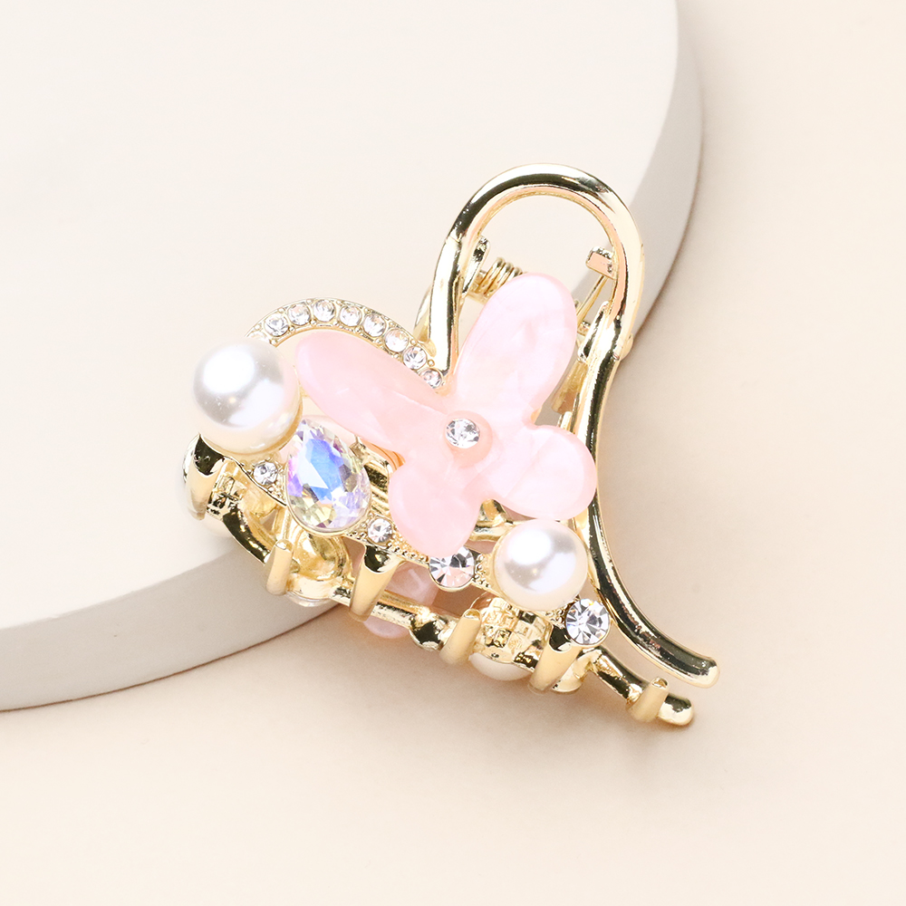 کلیپس قلب طلایی گل صورتی