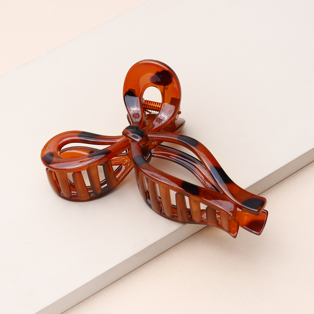 کلیپس قهوه ای تیره خالخالی، این کلیپس موی فانتزی و دوستداشتنی، با ترکیب رنگ قهوه ای تیره و خالخالهای مشکی، روحی تازه به طرحهای کلاسیک بخشیده است. فرم پاپیونی و مشبک این اکسسوری، حسی از سبکی و ظرافت را منتقل میکند و به دلیل رنگبندی خاصش، به راحتی با استایلهای روزمره، کژوال و حتی بوهو ست میشود.