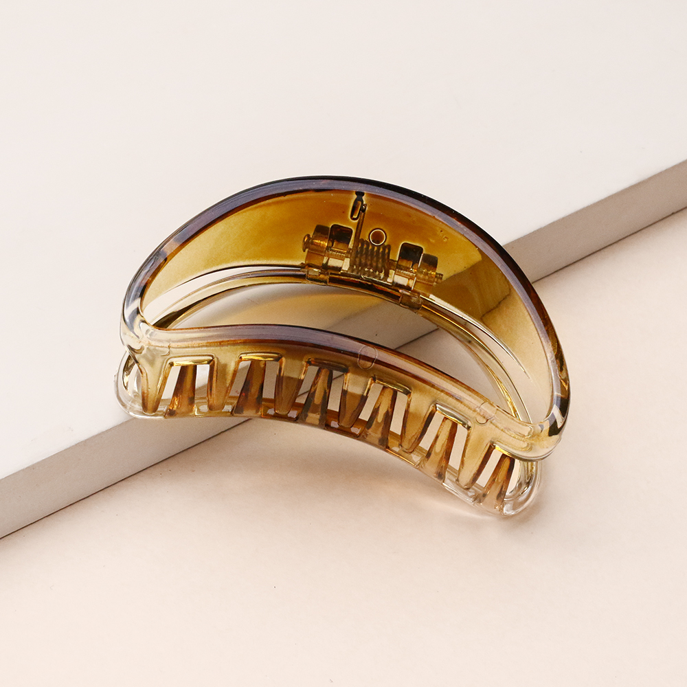 کلیپس مینی بیضی قهوه ای روشن، این مینیکلیپس جذاب و کاربردی، با طراحی بیضی و ابعاد ظریفش، انتخابی هوشمندانه برای جمع کردن قسمتی از موها یا استفاده برای موهای با حجم متوسط است. رنگ قهوه ای روشن نیمهشفاف آن عین سادگی، جلوهای لوکس به استایل شما میبخشد.