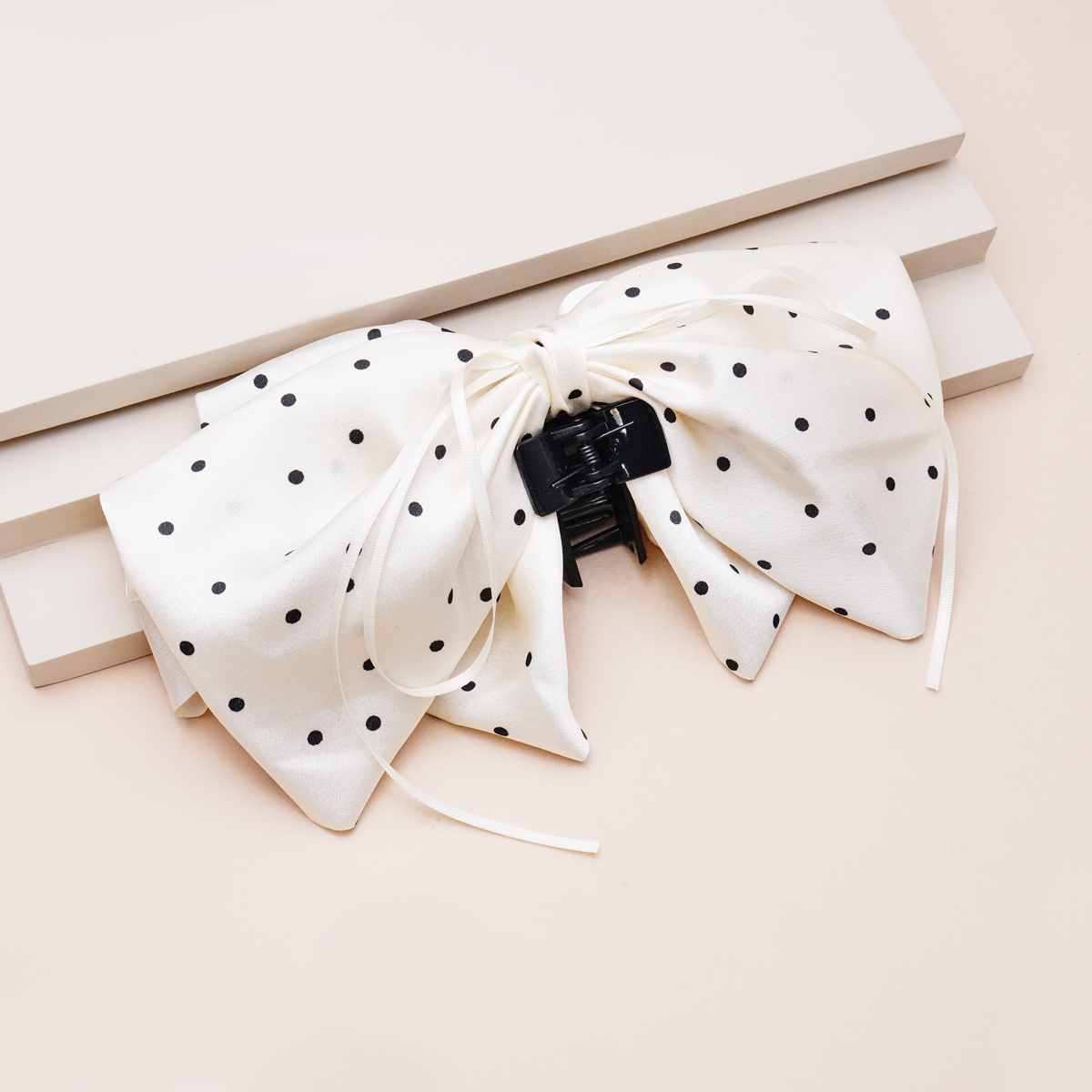 کلیپس پارچه ای پاپیون خال خالی با طراحی پارچه خالی خالی و ترکیب رنگ ملایم و شیک، انتخابی جذاب برای استایلهای دخترانه و مینیمال است. فرم پاپیونی در کنار پارچه لطیف و آویزهای نواری، جلوهای خاص و مرتب به موهای شما میبخشد و برای استفاده روزمره، مهمانی یا استایلهای نیمهرسمی کاملاً مناسب است. گیره محکم و استاندارد آن، موها را بهخوبی ثابت نگه میدارد و استفادهای راحت را فراهم میکند. این مدل زیبا در خانه اکسسوری کیان با دقت در کیفیت و طراحی عرضه شده تا ترکیبی از لطافت، استایل و دوام را تجربه کنید