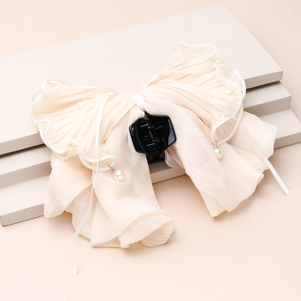 کلیپس پاپیون تور کرم با طراحی لایه‌لایه و بافت سبک خود، نمادی از ظرافت و زیبایی زنانه است. رنگ کرم ملایم این کار در کنار گل مشکی کوچکی که در مرکز آن خودنمایی می‌کند، تضادی کلاسیک و شیک ایجاد کرده که استایل شما را در عین سادگی، بسیار رمانتیک و منحصربه‌فرد نشان می‌دهد.