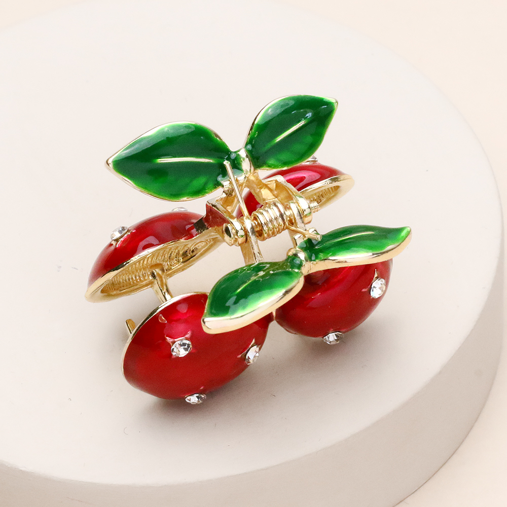 کلیپس گیلاس نگین دار با طرح گیلاس و درخشش نگینهای ظریف، ترکیبی از فانتزیِ جذاب و جلوهای مجلسی است. نگینکاریهای دقیق روی دانههای گیلاس، تلالوی خاصی به این اکسسوری بخشیده که آن را به گزینهای عالی برای خوشسلیقهها تبدیل میکند؛ انتخابی که هم حالوهوای شادابی دارد و هم به دلیل درخشش نگینها، استایل شما را لوکس و متمایز نشان میدهد.