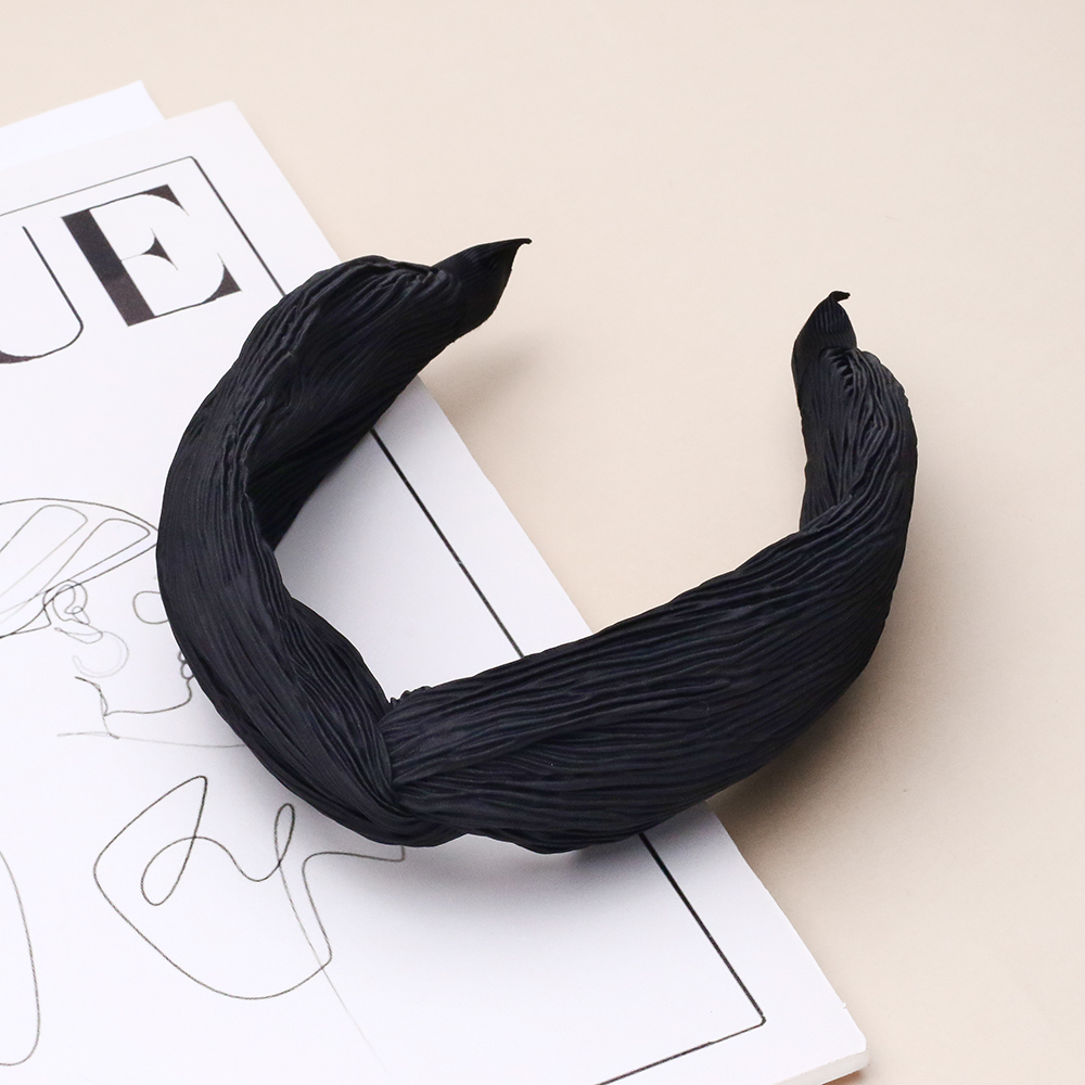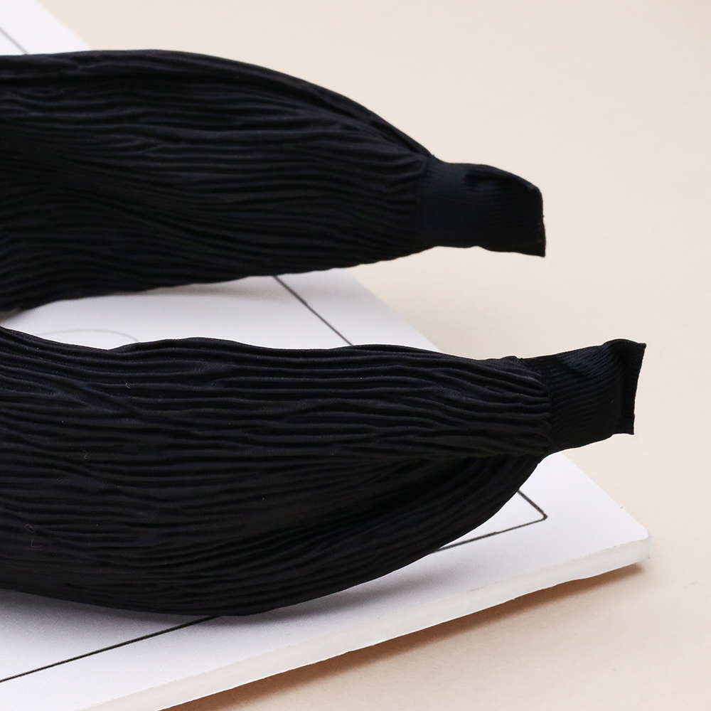 - بافت پیلیسه خاص: پارچه این تل دارای چینهای بسیار ظریف و منظم (پیلیسه) است که به آن بافتی سهبعدی و جذاب میبخشد. این جزئیات باعث میشود حتی در رنگ یکدست مشکی، تل روی موها کاملاً شاخص و نمایان باشد.