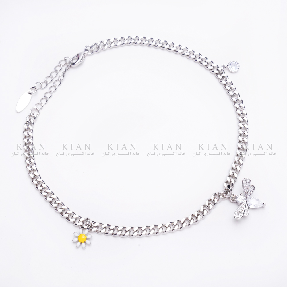 ترکیب زنجیر ظریف با آویز گل و سنجاقک، جلوه ای چشم نواز و متفاوت ایجاد کرده که مناسب استفاده روزمره یا مهمانی های تابستانی است. یک انتخاب دل نشین برای کسانی که به جزئیات ظریف و رنگ های ملایم علاقه دارند.
