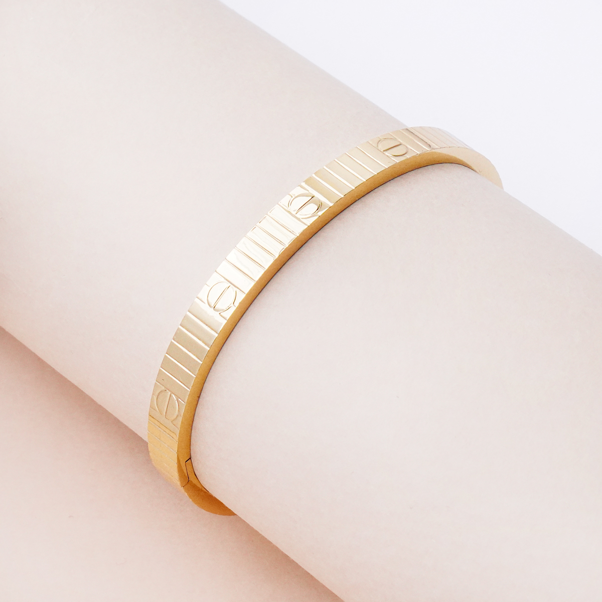 بنگل CARTTER طلایی با طراحی الهامگرفته از سبک کلاسیک و لوکس کارتیر، جلوهای شیک و چشمنواز به استایل شما میبخشد. فرم ساده و خوشساخت این بنگل در کنار رنگ طلایی براق، ظاهری مرتب و در عین حال خاص ایجاد میکند.