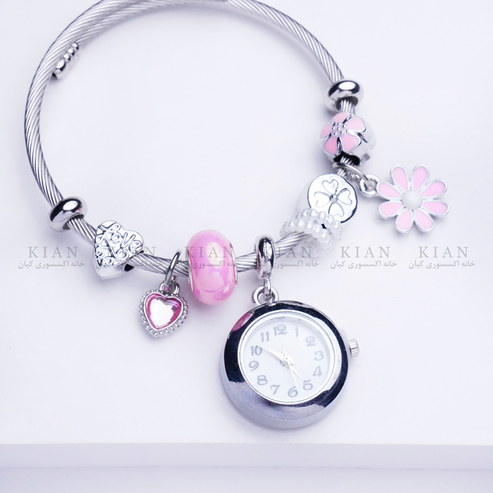 دستبند بنگل ساعتدار بابونه و قلب صورتی با طراحی خاص ترکیب بند بنگل و صفحه ساعت طرح گل بابونه و قلب، انتخابی شیک و فانتزی برای استایل های دخترانه است. رنگ صورتی قلب جلوه ای متفاوت و آرامش بخش ایجاد کرده و این دستبند را به گزینه ای جذاب برای استفاده روزمره و هدیه ای خاص تبدیل می کند. این مدل زیبا و پرطرفدار را می توانید از خانه اکسسوری کیان با کیفیت بالا و قیمت مناسب تهیه کنید.