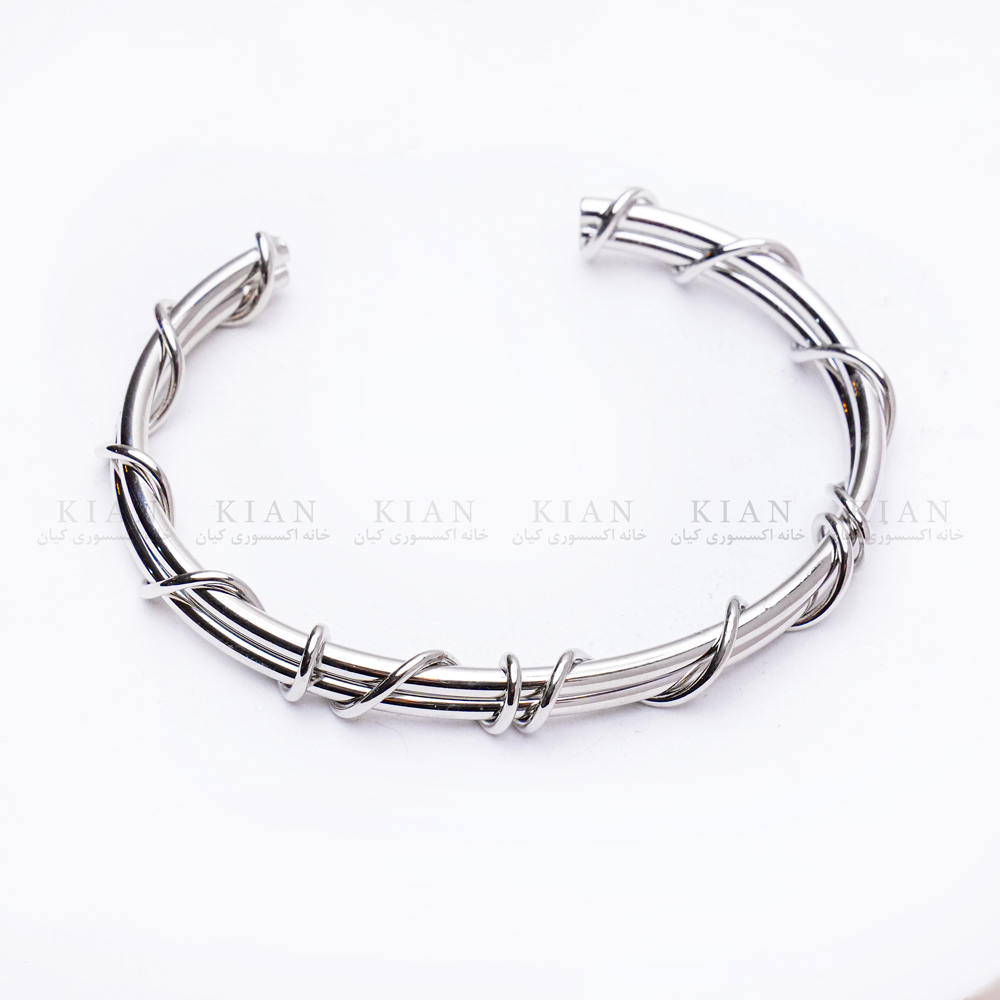 این دستبند با فرم فنری و ساختاری شبیه سیم‌های پیچ‌خورده طراحی شده است. خطوط نامنظم اما هماهنگ آن، جلوه‌ای هنری و مدرن ایجاد می‌کنند و دستبند را به یک اکسسوری استیتمنت تبدیل می‌سازند. با وجود ظاهر متفاوت، این مدل سبک بوده و به‌خوبی روی مچ قرار می‌گیرد.