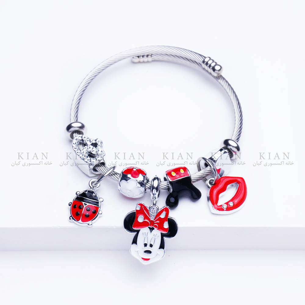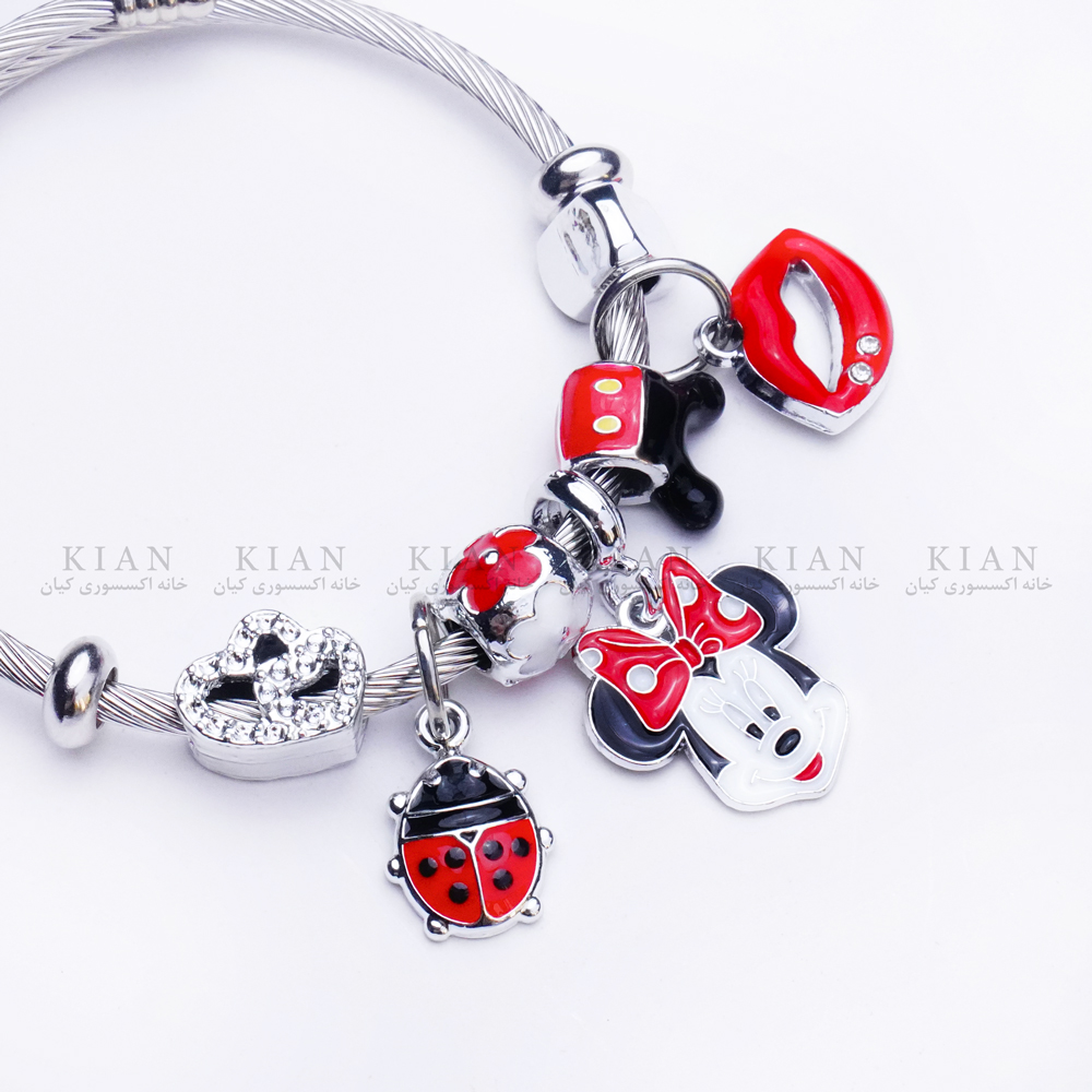 دستبند بنگل پاندورا میکی قرمز با طراحی فانتزی و ترکیب آویز عروسک میکی، انتخابی بامزه و شیک برای استایل های دخترانه است. رنگ قرمز ظریف این دستبند جلوه ای خاص و دلنشین ایجاد کرده و سبک پاندورا به آن حالتی مدرن و متفاوت بخشیده است. این مدل جذاب و پرطرفدار هم برای استفاده روزمره و هم برای هدیه ای خاص مناسب است. این دستبند زیبا را می توانید از خانه اکسسوری کیان با کیفیت بالا و قیمت مناسب تهیه کنید.