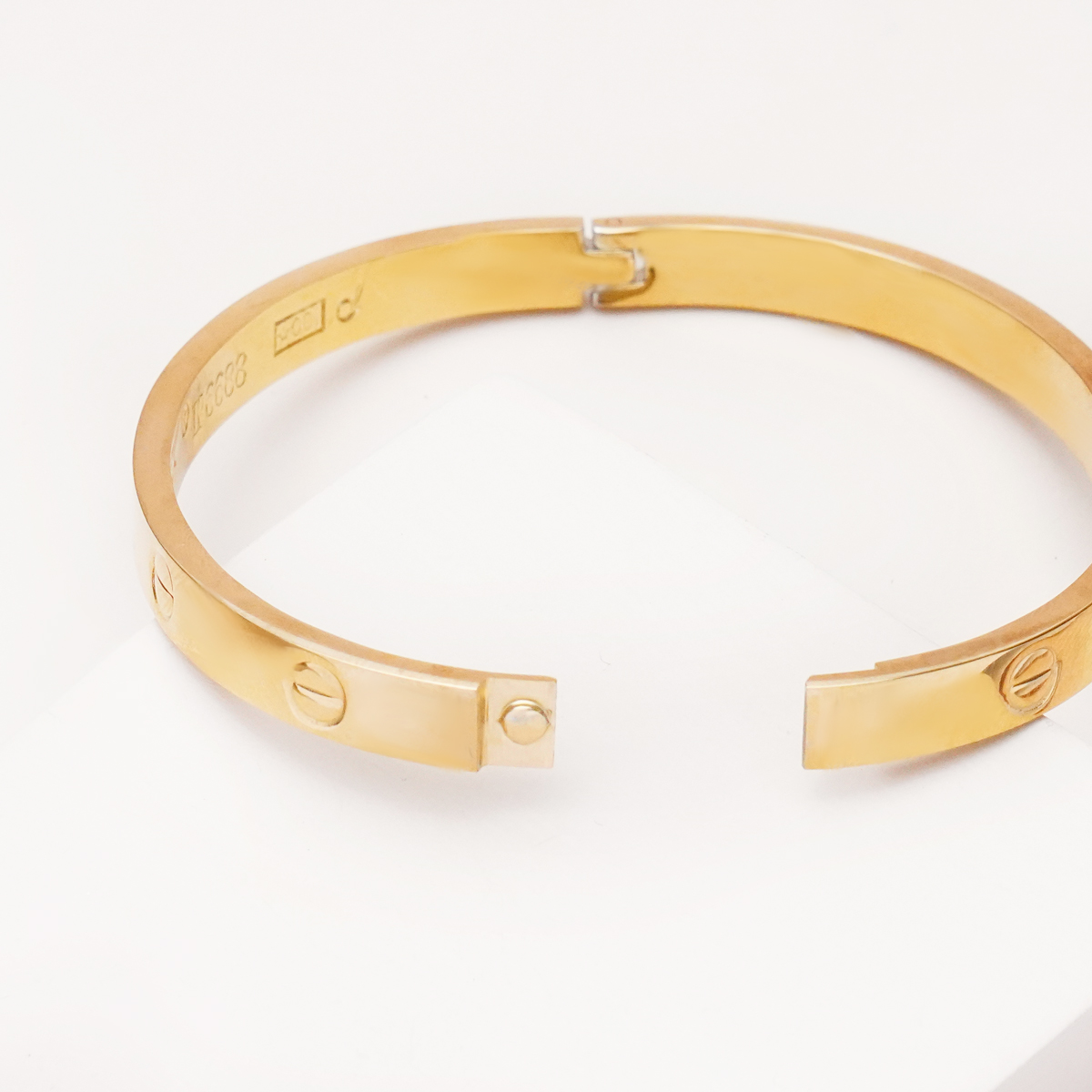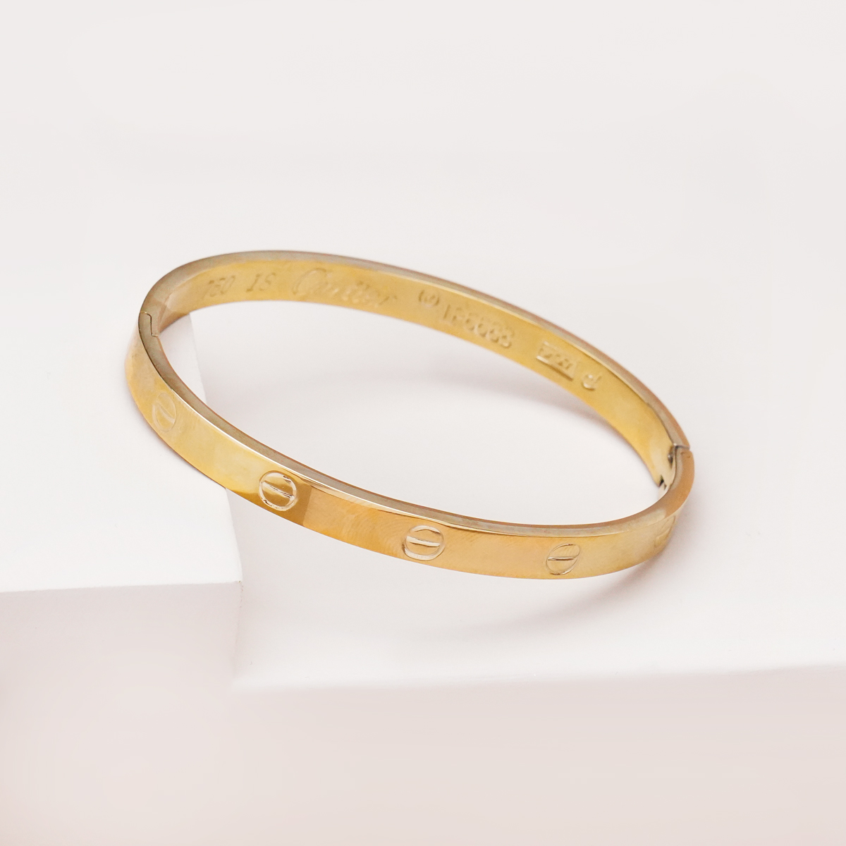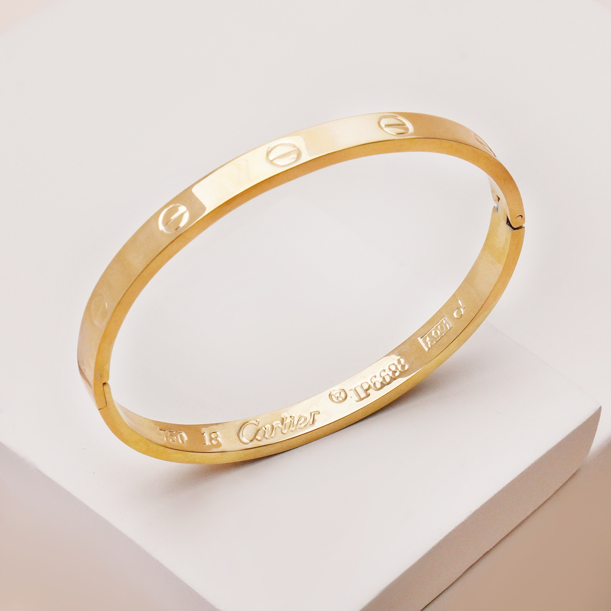 دستبند بنگل کارتیه لاو طلایی با طراحی الهامگرفته از سبک کلاسیک و لوکس، انتخابی شیک و ماندگار برای استایلهای خاص و مینیمال است. فرم حلقهای ثابت بنگل در کنار جزئیات نمادین پیچمانند روی بدنه، جلوهای ظریف اما بسیار چشمگیر ایجاد کرده که بهراحتی با سایر زیورآلات طلایی ست میشود.