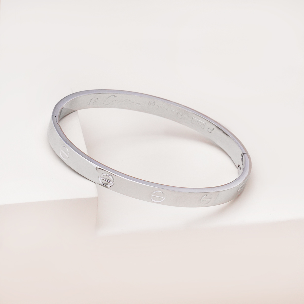 دستبند بنگل کارتیه لاو نقره ای با طراحی الهامگرفته از سبک کلاسیک و لوکس، انتخابی شیک و ماندگار برای استایلهای خاص و مینیمال است. فرم حلقهای ثابت بنگل در کنار جزئیات نمادین پیچمانند روی بدنه، جلوهای ظریف اما بسیار چشمگیر ایجاد کرده که بهراحتی با سایر زیورآلات طلایی ست میشود.