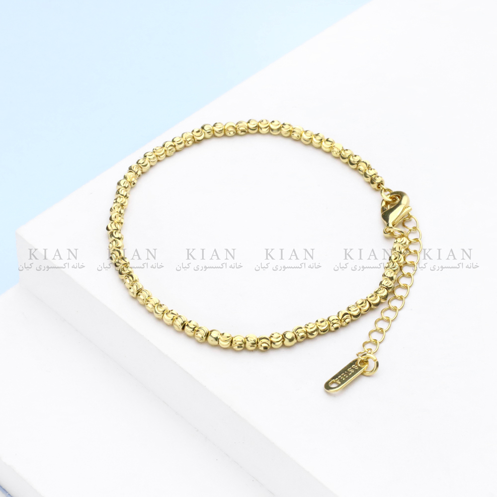 این دستبند با زنجیر بافت‌دار و درخشش جواهری‌مانند طراحی شده و جلوه‌ای بسیار شیک و رسمی دارد. رنگ طلایی گرم و براق آن، استایل شما را زیباتر می‌کند و به‌خاطر کیفیت بالای آبکاری، مدت طولانی بدون تغییر باقی می‌ماند.