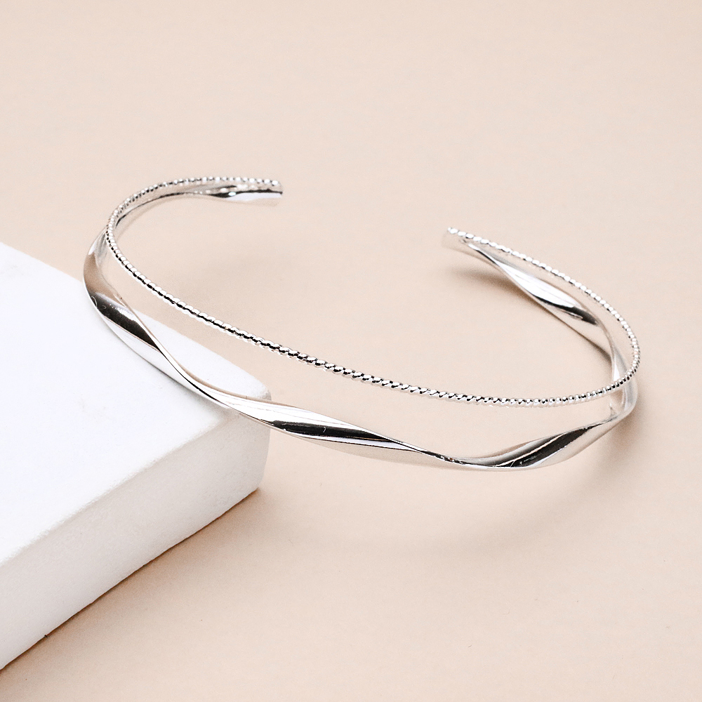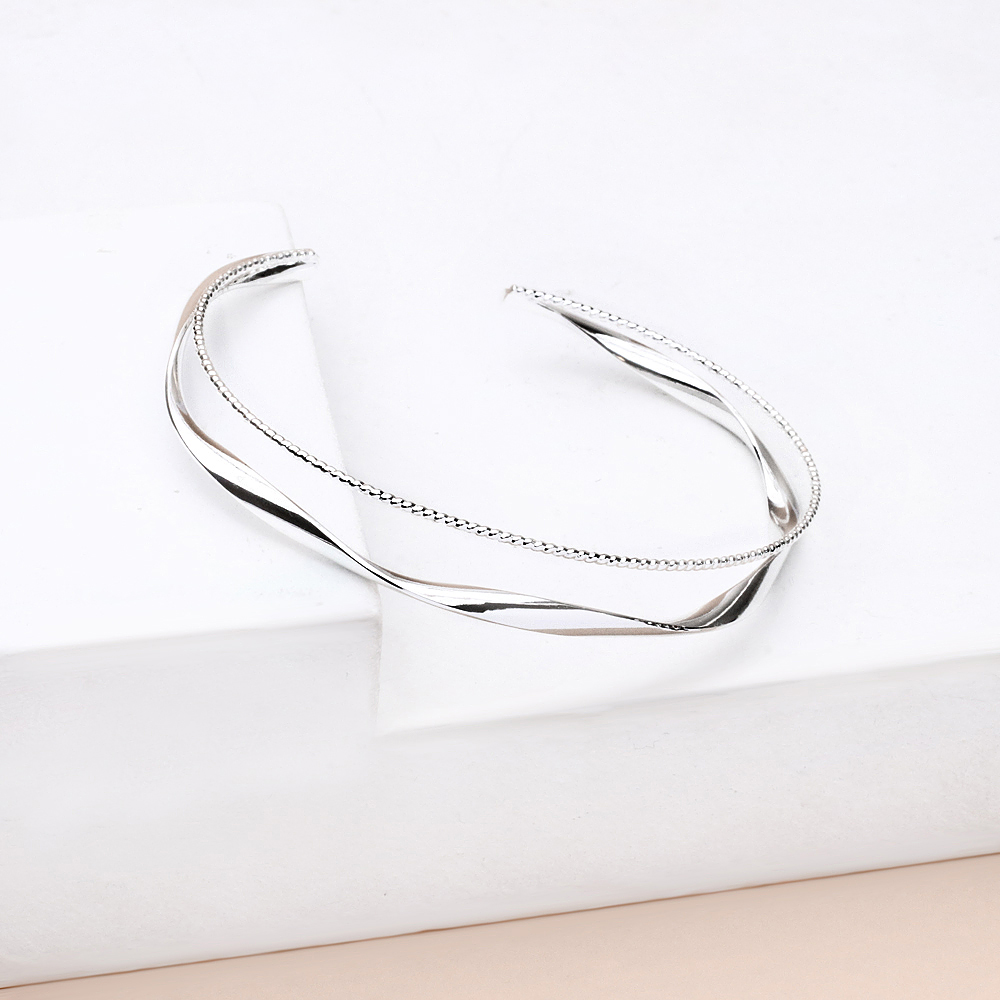 دستبند طرح موج نقره‌ای با طراحی الهام‌گرفته از حرکت نرم و پیوسته موج، جلوه‌ای ظریف و مدرن به استایل شما می‌بخشد. فرم موج‌دار این دستبند، حس پویایی و لطافت ایجاد کرده و ظاهر آن را ساده اما متفاوت نشان می‌دهد.