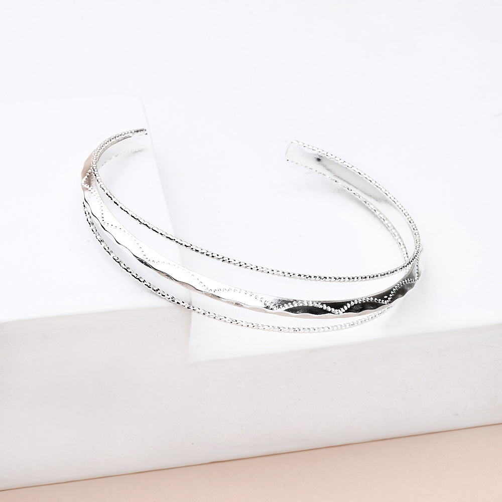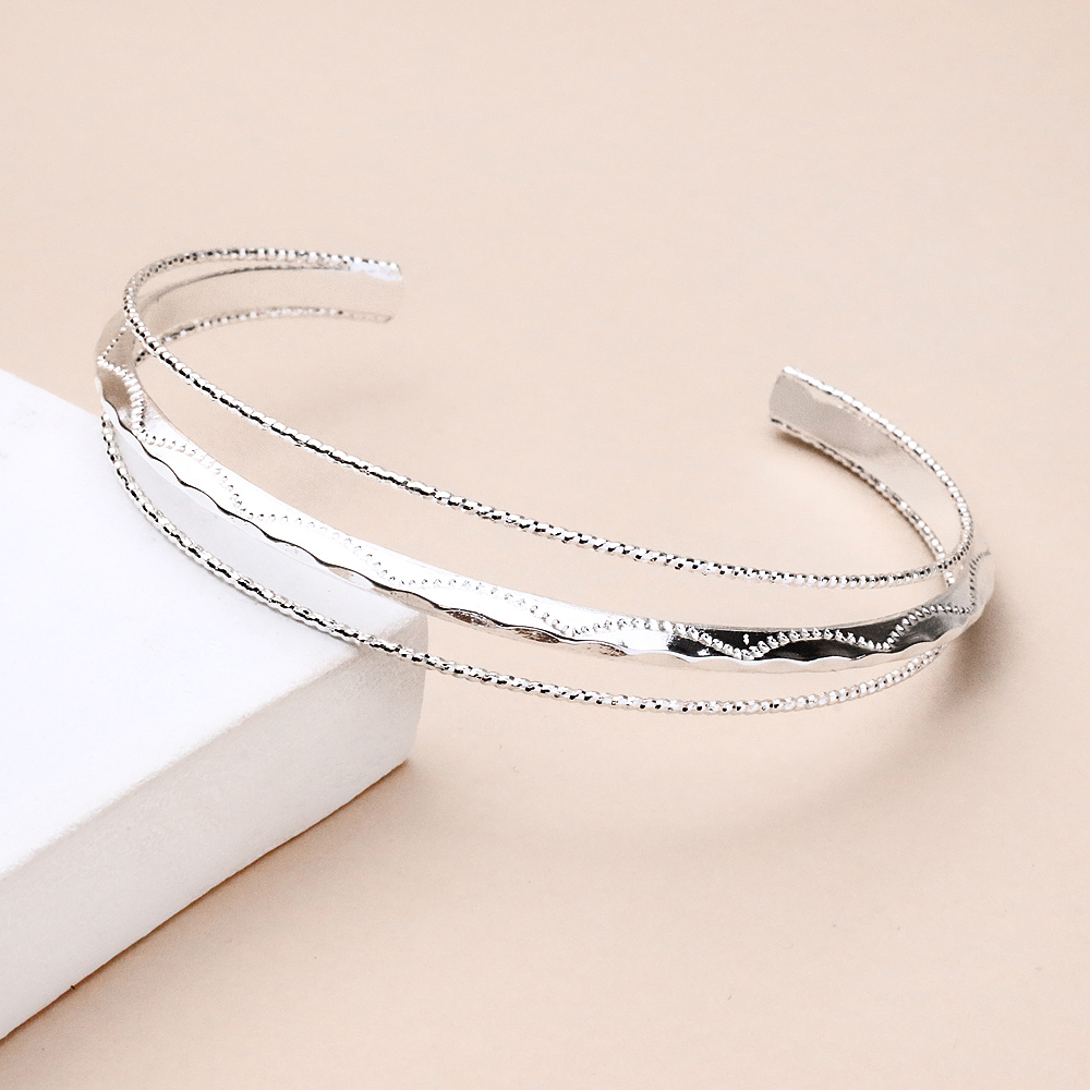 دستبند نقرهای طرحدار با طراحی ظریف و جزئیات کارشده، جلوهای خاص و متفاوت به استایل شما میبخشد. نقشها و فرمهای ظریف روی بدنه دستبند، بافتی جذاب ایجاد کردهاند که آن را از مدلهای ساده متمایز میکند و باعث میشود روی دست جلوهای چشمنواز داشته باشد.