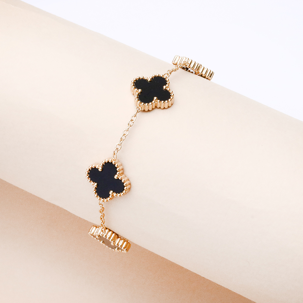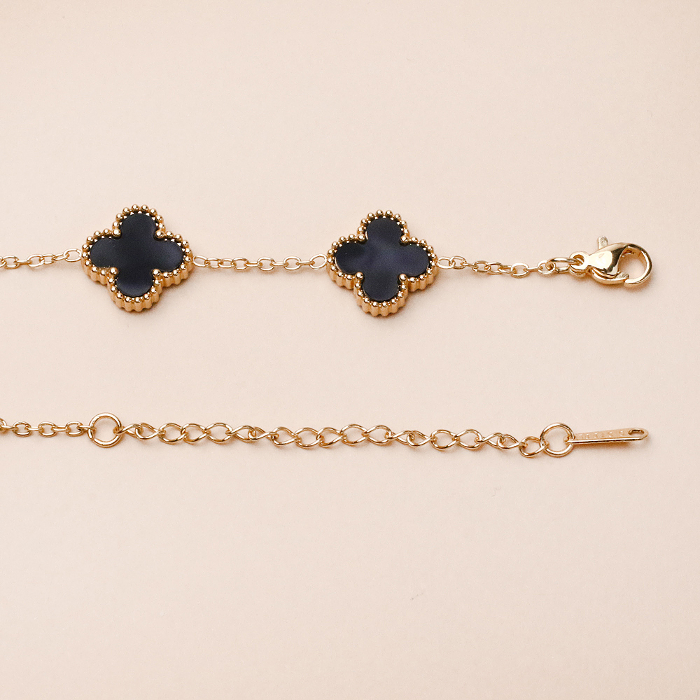 دستبند ونکلیف ۵ گل مشکی یکی از محبوبترین و پرفروشترین مدلهای اکسسوری زنانه است که با طراحی ظریف و الهامگرفته از سبک کلاسیک ونکلیف، جلوهای شیک، خاص و چشمنواز به استایل شما میبخشد. ترکیب پنج گل مشکی در کنار طراحی مینیمال، این دستبند را به انتخابی ایدهآل برای استفاده روزمره، استایلهای رسمی و استایلهای مونوکروم تبدیل کرده است.