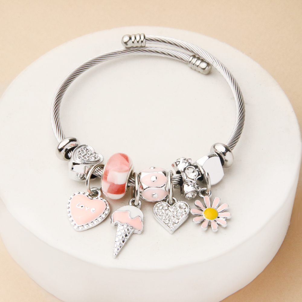 دستبند پاندورا بستنی یکی از طراحیهای فانتزی و دوستداشتنی خانه اکسسوری کیان است که با الهام از دنیای شیرین و رنگارنگ بستنی، حس شادی، انرژی و استایل جوانپسند را به ظاهر شما اضافه میکند. آویزهای ظریف با طرح بستنی در کنار ساختار کلاسیک دستبند پاندورا، این محصول را به انتخابی خاص برای استایلهای روزمره و اسپرت تبدیل کرده است.