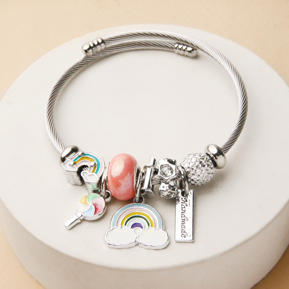ترکیب رنگ‌های متنوع در کنار بدنه نقره‌ای براق، این دستبند را به انتخابی ایده‌آل برای استفاده روزمره، استایل‌های اسپرت و حتی هدیه‌ای متفاوت تبدیل کرده است. این مدل به‌راحتی با سایر اکسسوری‌های فانتزی ست می‌شود و حس سرزندگی را به ظاهر شما اضافه می‌کند.