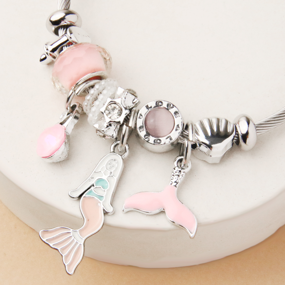 دستبند پاندورا پری دریایی از طراحیهای فانتزی و رؤیایی خانه اکسسوری کیان است که با الهام از دنیای افسانهای پریهای دریایی، حس لطافت، خیالانگیزی و زیبایی را به استایل شما اضافه میکند. آویز ظریف پری دریایی در کنار جزئیات هماهنگ و رنگهای ملایم، این دستبند را به انتخابی خاص و متفاوت تبدیل کرده است.