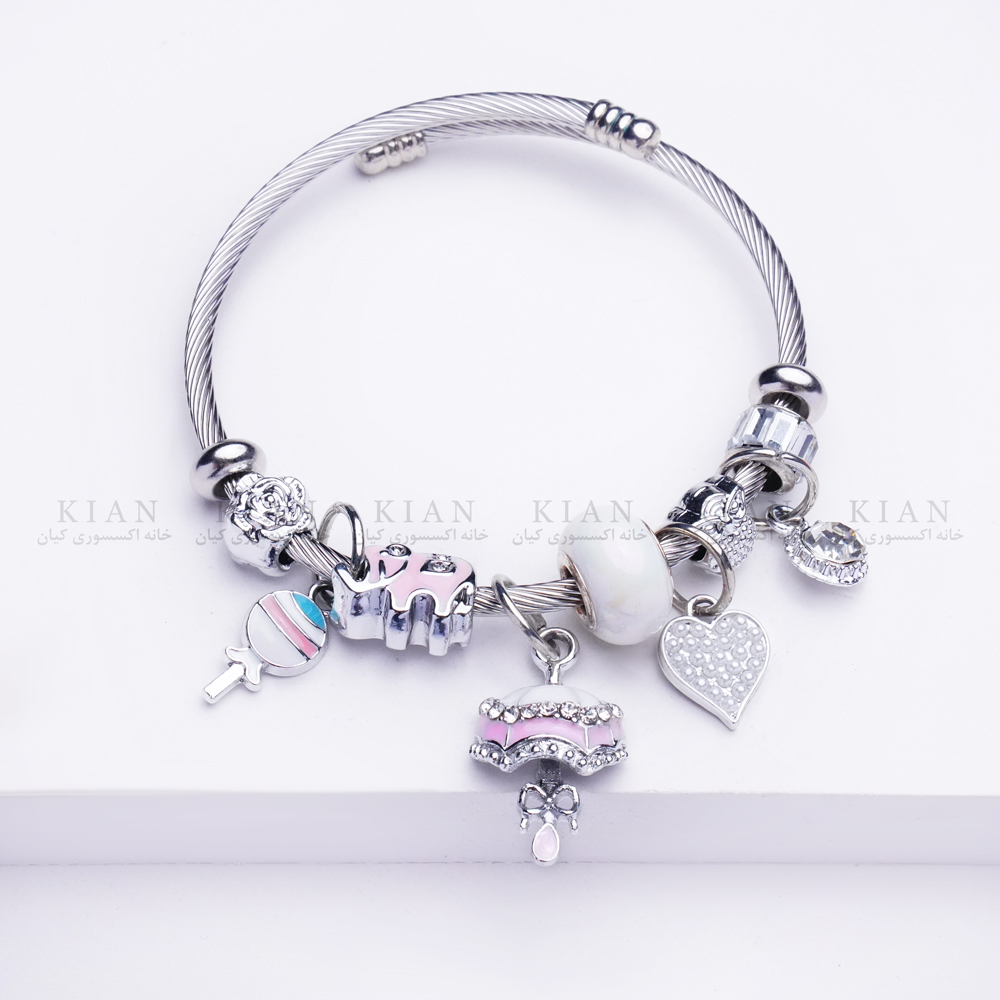 دستبند پاندورا چتر صورتی یکی از مدلهای خاص و فانتزی خانه اکسسوری کیان است. طراحی ظریف با مهرههای براق و آویز چتر صورتی، جلوهای لطیف و دخترانه ایجاد کرده که برای استایلهای روزمره و هدیه دادن بسیار محبوب است. رنگ صورتی ملایم در کنار جزئیات فلزی درخشان، این دستبند را به انتخابی خاص برای عاشقان اکسسوریهای پاندورا تبدیل کرده است.