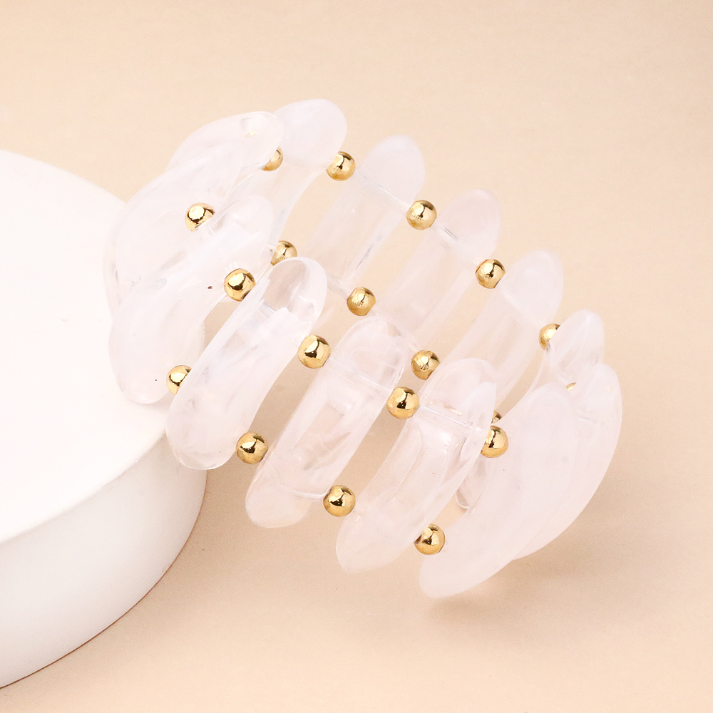 دستبند کشی پهن سفید با طراحی ساده و رنگ روشن، جلوه‌ای تمیز و مینیمال به استایل شما می‌بخشد. رنگ سفید این دستبند حس لطافت و سادگی ایجاد کرده و به‌راحتی با انواع استایل‌های روزمره و نیمه‌رسمی ست می‌شود.