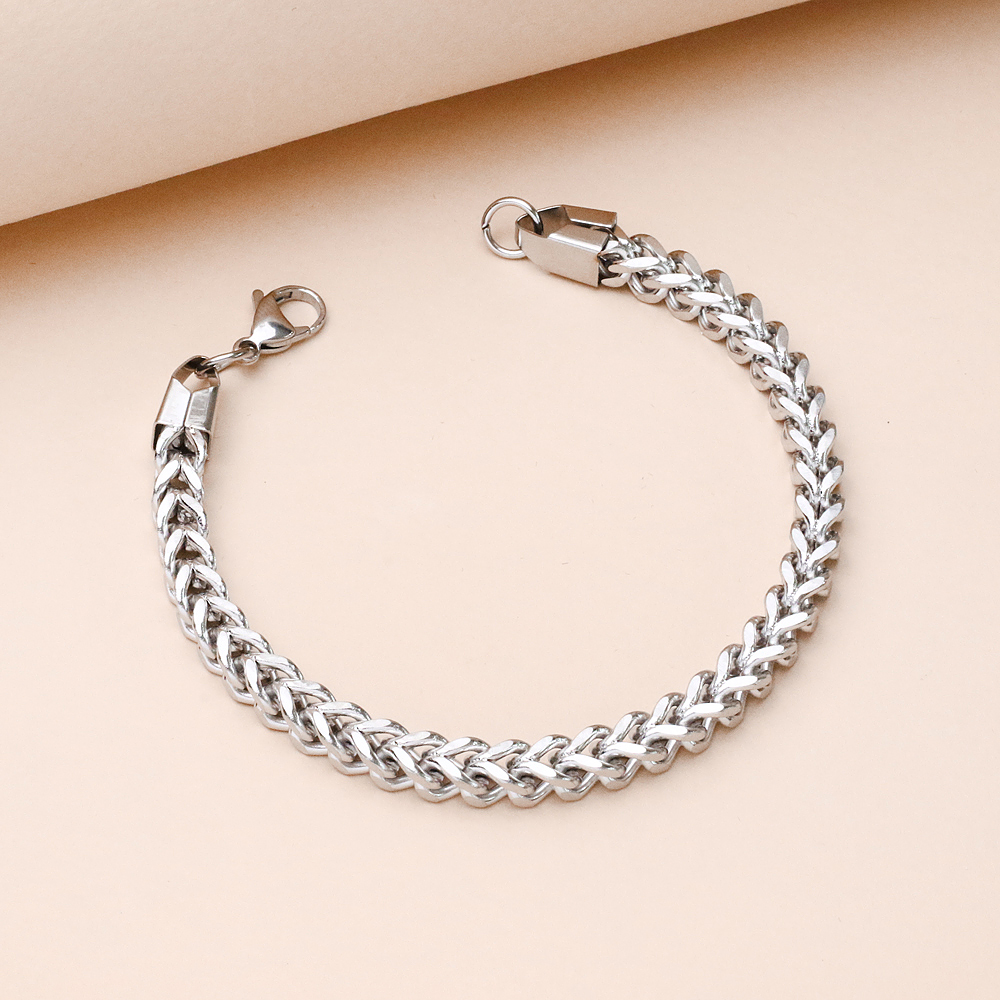 دستبند گندمی با بافت زنجیری منظم و الهام‌گرفته از خوشه‌های گندم، طراحی‌ای کلاسیک و همیشه‌مد دارد که هیچ‌وقت از ترند خارج نمی‌شود. فرم درهم‌تنیده و منسجم این مدل، جلوه‌ای خاص و متفاوت روی مچ دست ایجاد می‌کند و در عین سادگی، حس ظرافت و استحکام را هم‌زمان منتقل می‌کند.