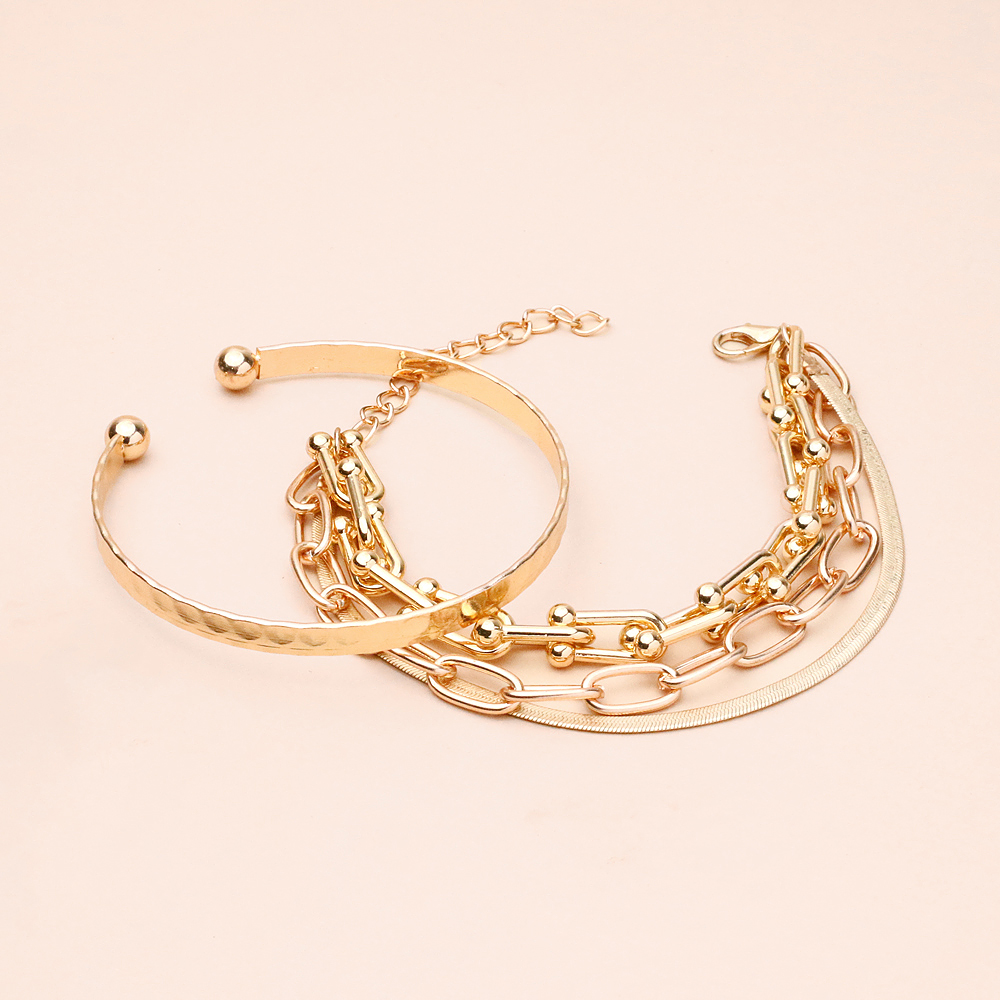 پک دستبند النگویی ماری طلایی با طراحی الهامگرفته از فرم مار و ساختار النگویی، جلوهای لوکس و چشمگیر به استایل شما میبخشد. رنگ طلایی براق در کنار فرم ماری، حس قدرت و جذابیت ایجاد کرده و ترکیبی هماهنگ و شیک روی دست به وجود میآورد.