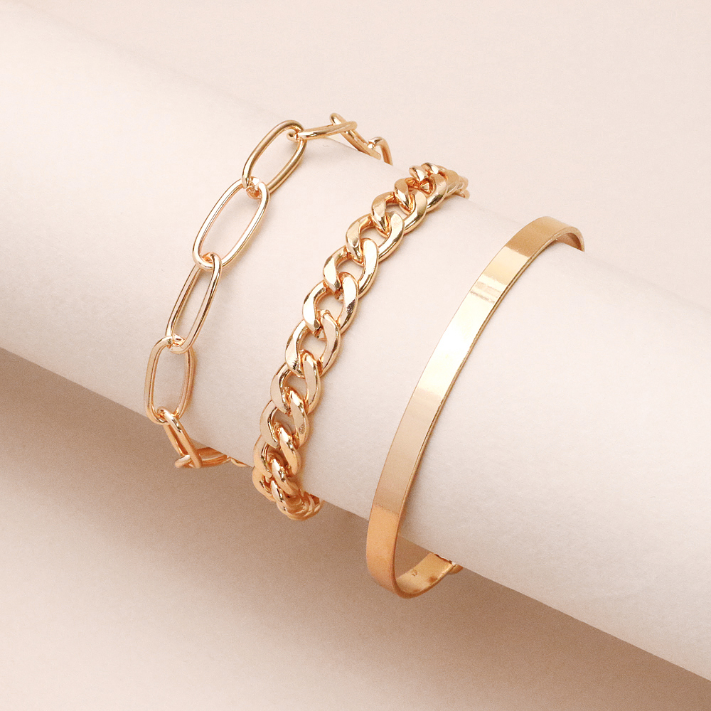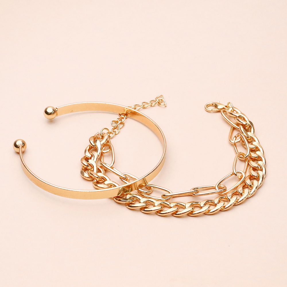 پک دستبند زنجیری و کارتیر طلایی با ترکیب دو مدل محبوب و رنگ طلایی براق، جلوهای شیک و لوکس به استایل شما میبخشد. کنار هم قرار گرفتن زنجیر کلاسیک و طراحی الهامگرفته از کارتیر، ظاهری هماهنگ و چشمنواز ایجاد کرده و استایل را خاصتر نشان میدهد.