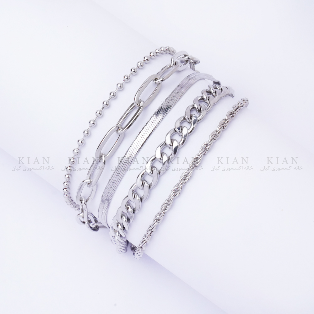 ترکیب چند دستبند با طرحهای متنوع اما هماهنگ، جلوهای چشمنواز و لوکس به دستان شما میبخشد. این پک با لباسهای مجلسی یا حتی استایل روزمره بهخوبی ست میشود و حس اعتمادبهنفس و درخشش را در هر موقعیتی به همراه دارد.