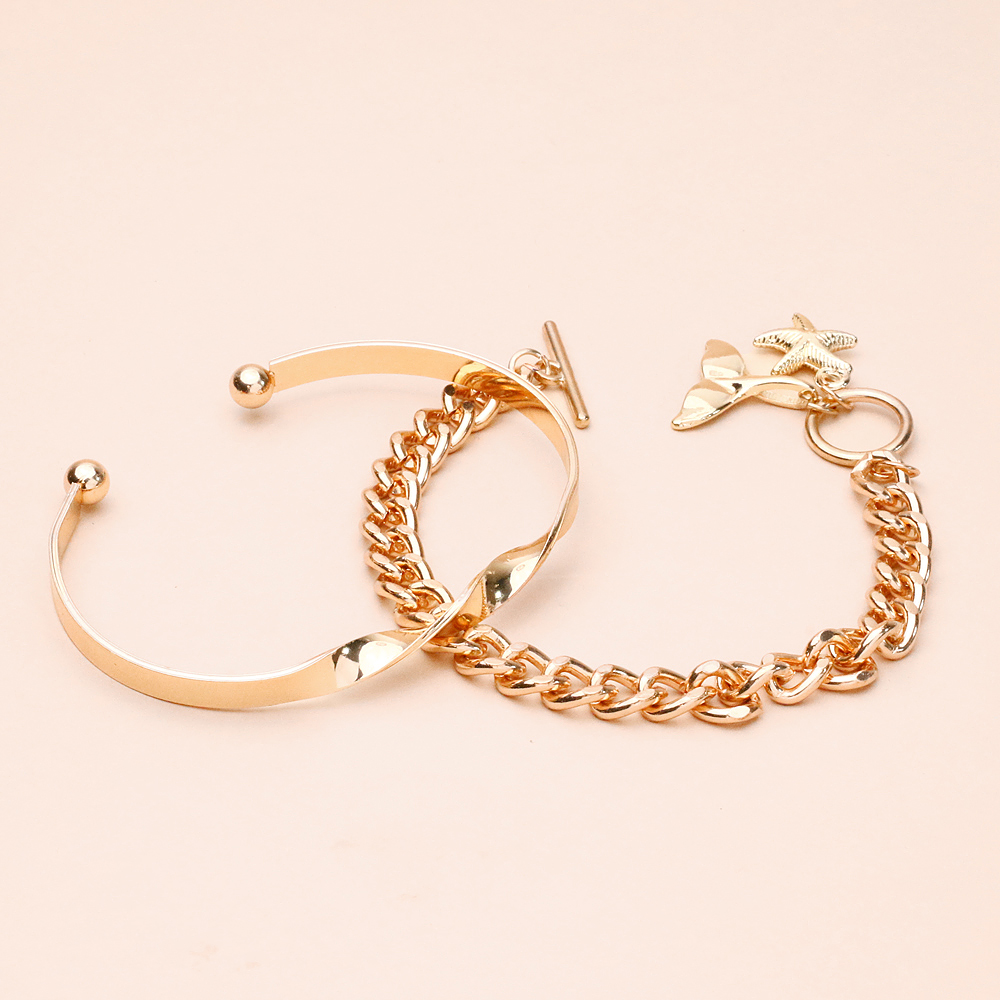 پک دستبند کارتیر تیفانی طلایی با ترکیب دو سبک محبوب و لوکس، جلوه‌ای شیک و چشم‌نواز به استایل شما می‌بخشد. رنگ طلایی براق در کنار طراحی الهام‌گرفته از کارتیر و ظرافت مینیمال تیفانی، ظاهری هماهنگ و بسیار ترندی ایجاد می‌کند.