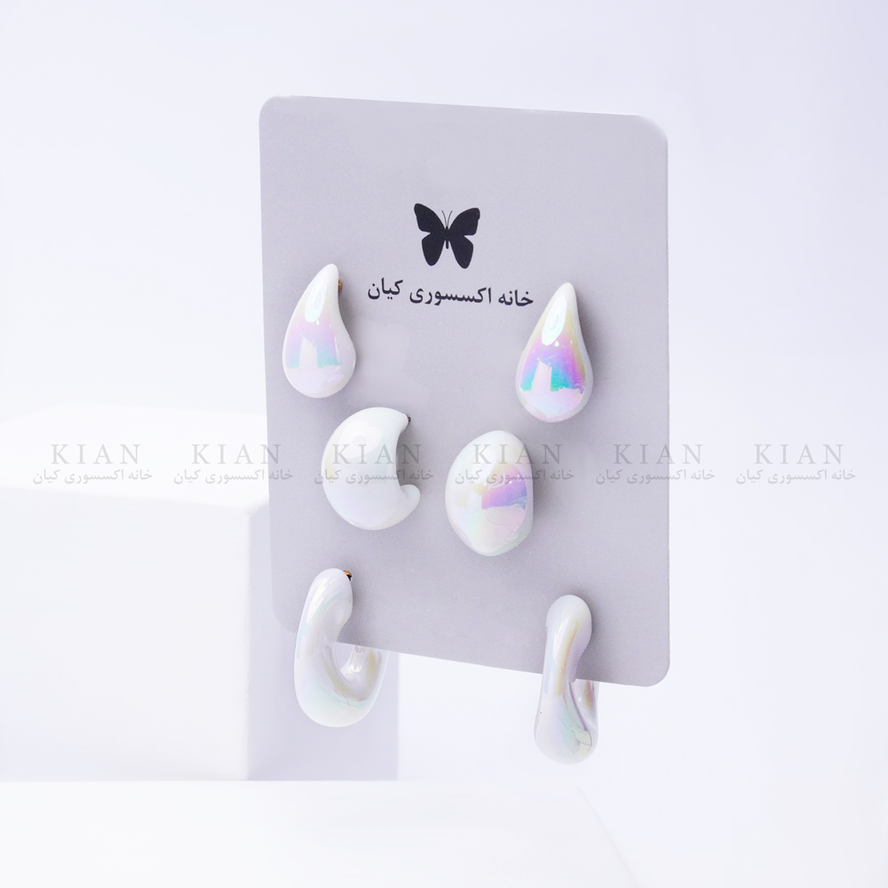 گوشوارههای اشکی این پک با ظاهر کریستالی و براق خود، حالت شاین ملایمی ایجاد میکنند و گوشوارههای حلقهای نیز با طراحی نرم و سبک، استایلتان را تکمیل میکنند. هر سه مدل بسیار سبک، راحت و بدون ایجاد حس سنگینی هستند و اتصال محکم آنها باعث میشود در طول روز با خیال راحت از آنها استفاده کنید.