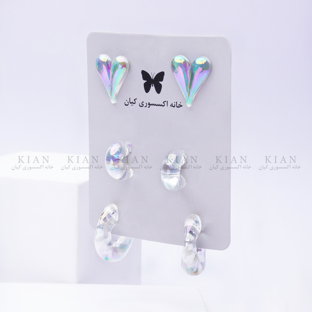 گوشوارههای اشکی هولوگرامی این پک، با انعکاس رنگی ظریف خود، مانند قطرههای نور عمل میکنند و بهخصوص در نور طبیعی، بسیار درخشان و زیبا به نظر میرسند. مدلهای قلبی و آویزی نیز با طراحی سبک و بدون لبه تیز، استفاده طولانیمدت را کاملاً راحت و بدون ایجاد سنگینی میکنند.