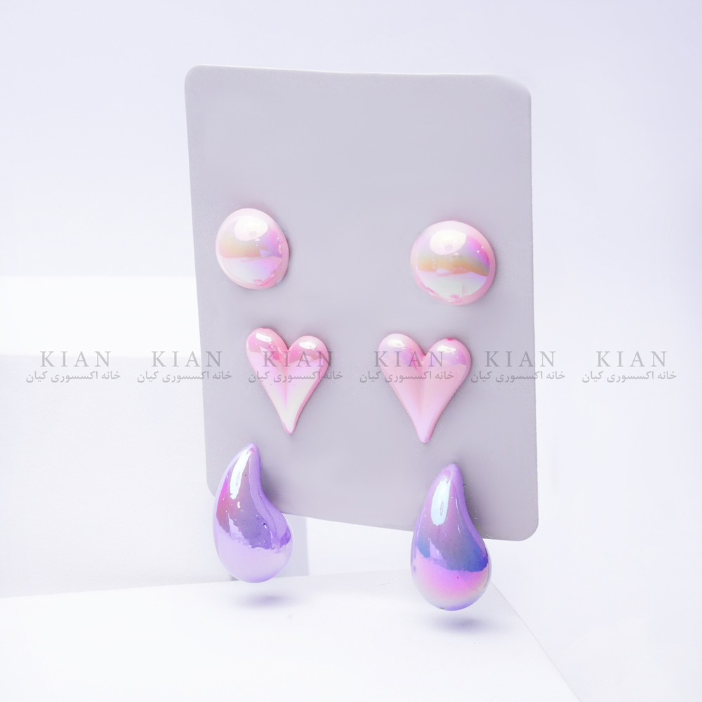 این پک شامل سه جفت گوشواره فانتزی با طراحی آبنباتی و رنگهای صورتی بنفش است که هرکدام حالوهوای متفاوت و شیرینی دارند. جنس سبک و کیفیت بالای ساخت، باعث میشود روی گوش کاملاً راحت باشند و در طول روز اذیت نکنند.