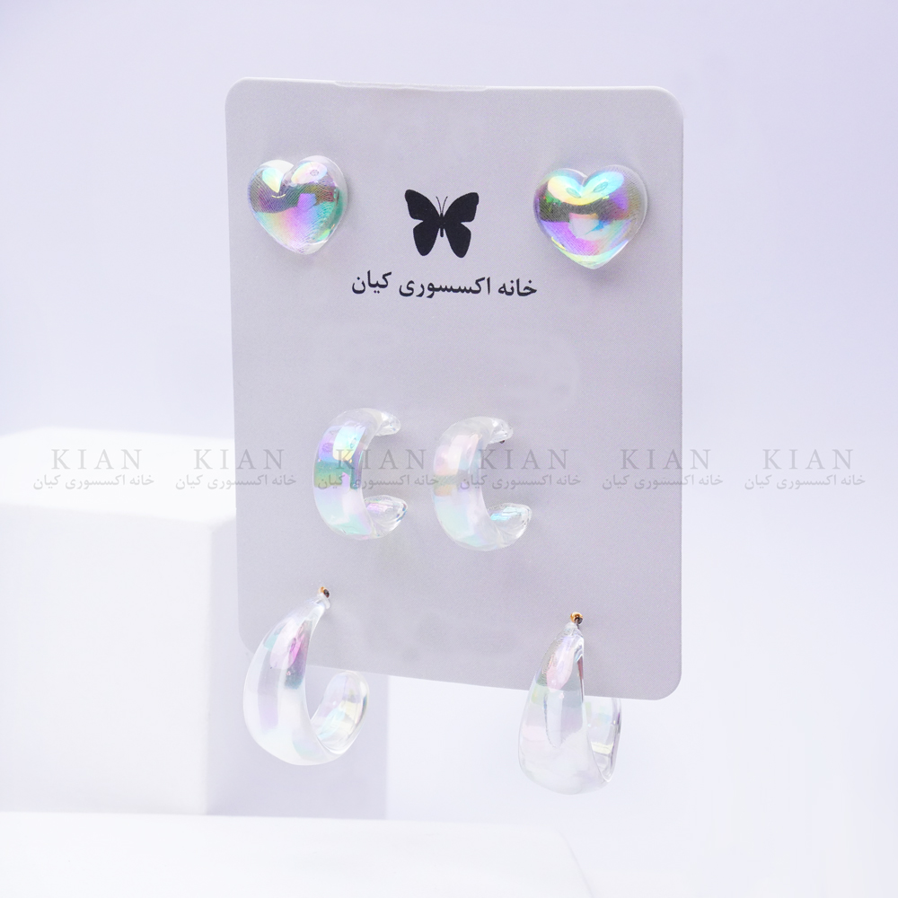 پک گوشواره شیشهای دو حلقه مجموعهای جذاب از مدلهای شفاف و هولوگرامی است که جلوهای روشن، براق و دخترانه به استایل شما میبخشد. این پک شامل سه مدل محبوب است: