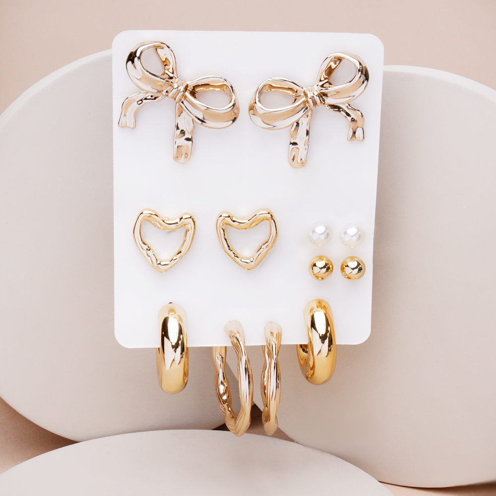 پک گوشواره قلب و پاپیون طلایی با طراحی ظریف و فانتزی، انتخابی شیک و دخترانه برای استایلهای روزمره و مجلسی است. ترکیب فرم قلب و پاپیون در کنار رنگ طلایی براق، این پک را به گزینهای خاص، لطیف و ترند تبدیل کرده که بهراحتی با انواع استایلها ست میشود. این محصول از کالکشن زیورآلات خانه اکسسوری کیان، با ظرافت بالا و جلوهای چشمنواز ارائه شده است.