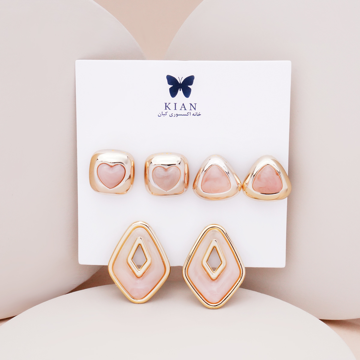 پک گوشواره لوزی گلبهی