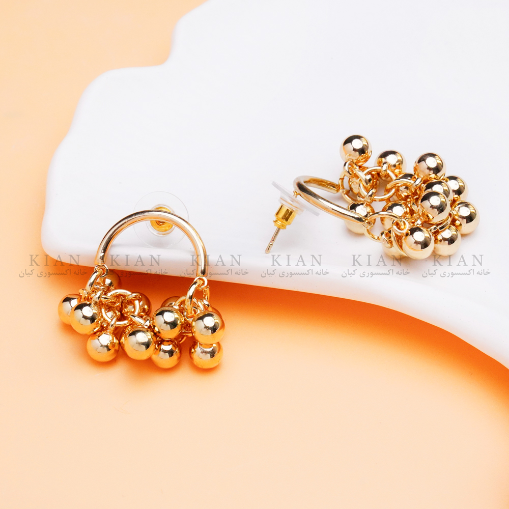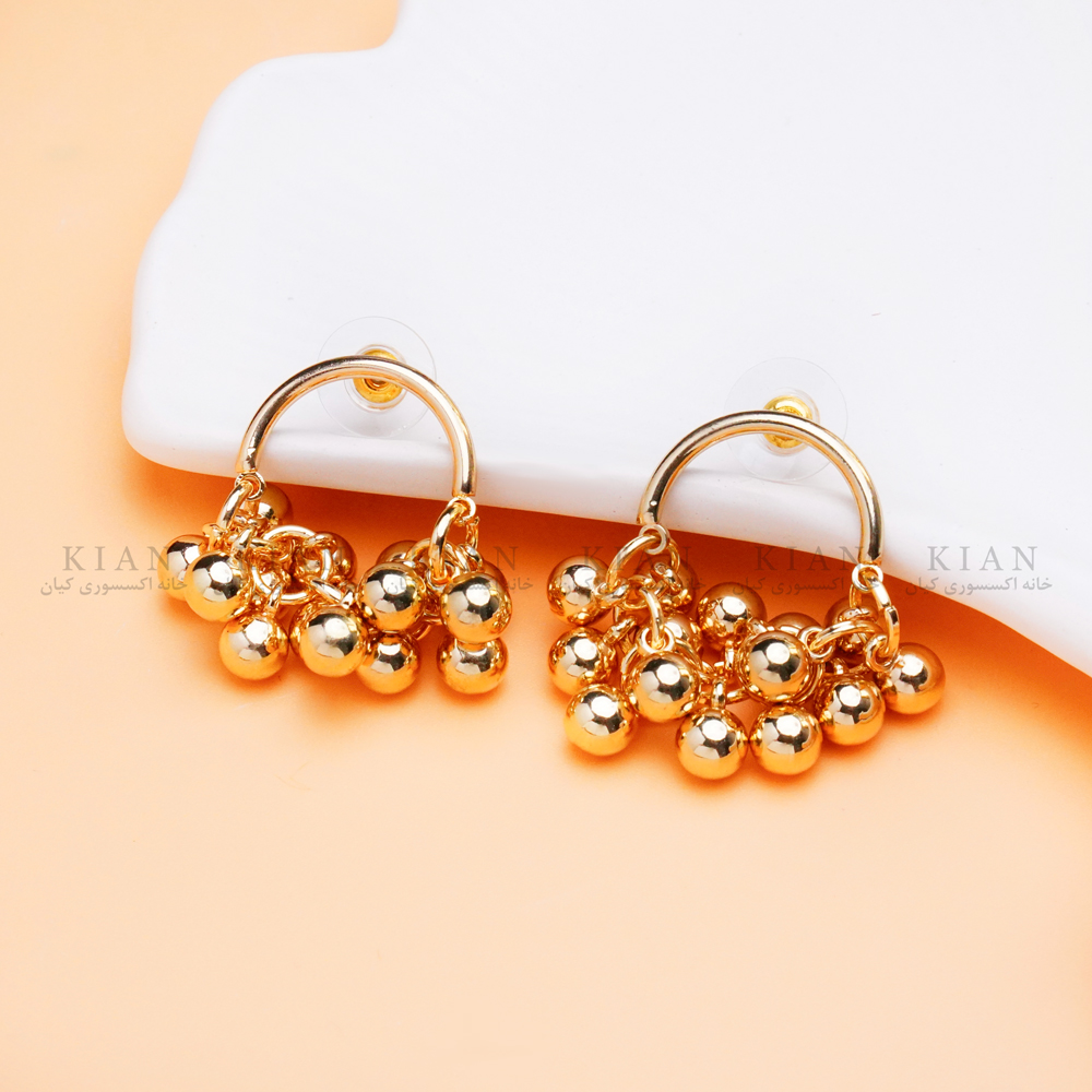 گوشواره آویز توپی طلایی با طراحی مدرن و آویزهای کروی براق، انتخابی شیک و متفاوت برای استایل های زنانه و دخترانه است. رنگ طلایی درخشان این گوشواره جلوه ای لوکس و چشمگیر ایجاد می کند و به راحتی با استایل های رسمی و مجلسی ست می شود. این مدل خاص و پرطرفدار را می توانید از خانه اکسسوری کیان با کیفیت بالا و قیمت مناسب تهیه کنید.
