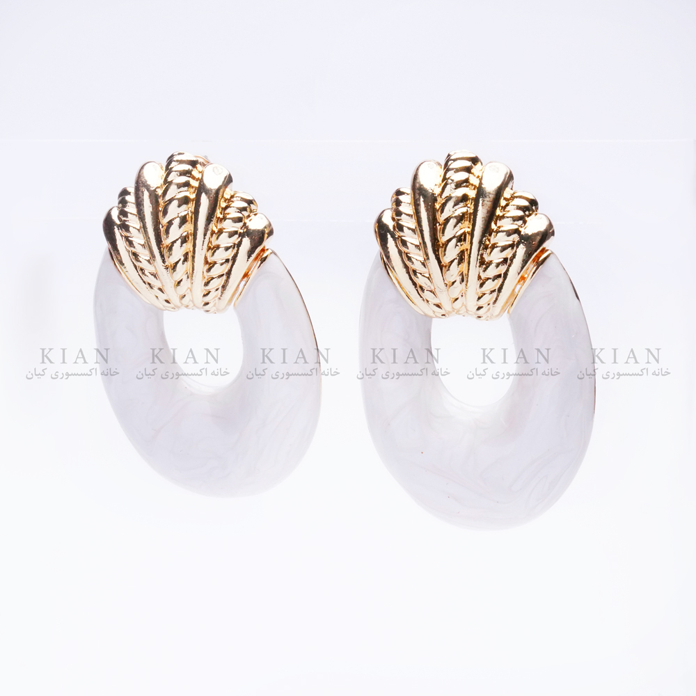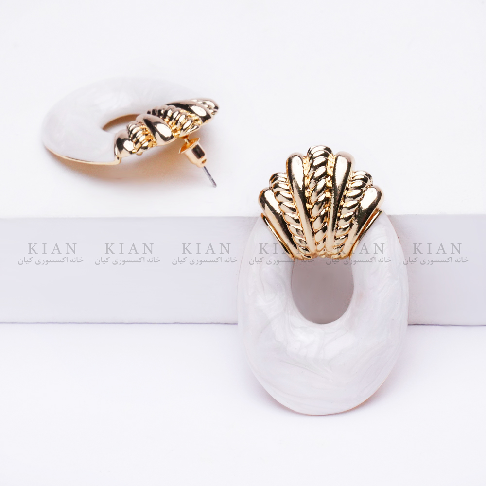 گوشواره تاج دار سفید از مجموعه ی خاص خانه اکسسوری کیان، ترکیبی شیک از رنگ سفید براق و طلایی در طراحی ای منحصر به فرد و چشم گیر است.