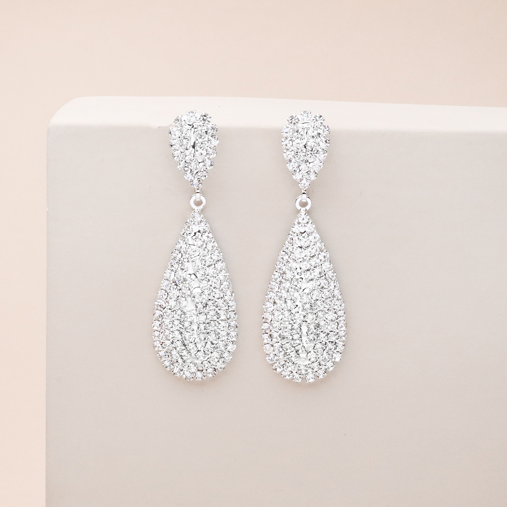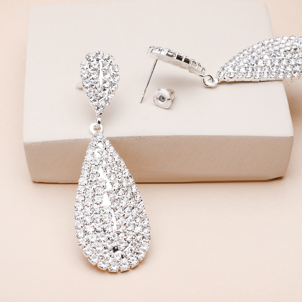 فرم کشیده و آویزدار گوشواره، باعث میشود چهره کشیدهتر و زیباتر دیده شود و درخشش نگینها در نور، جلوهای لوکس و دلنشین ایجاد کند. این مدل برای مهمانیها، مراسم رسمی و ست شدن با لباسهای مجلسی انتخابی بینقص است.