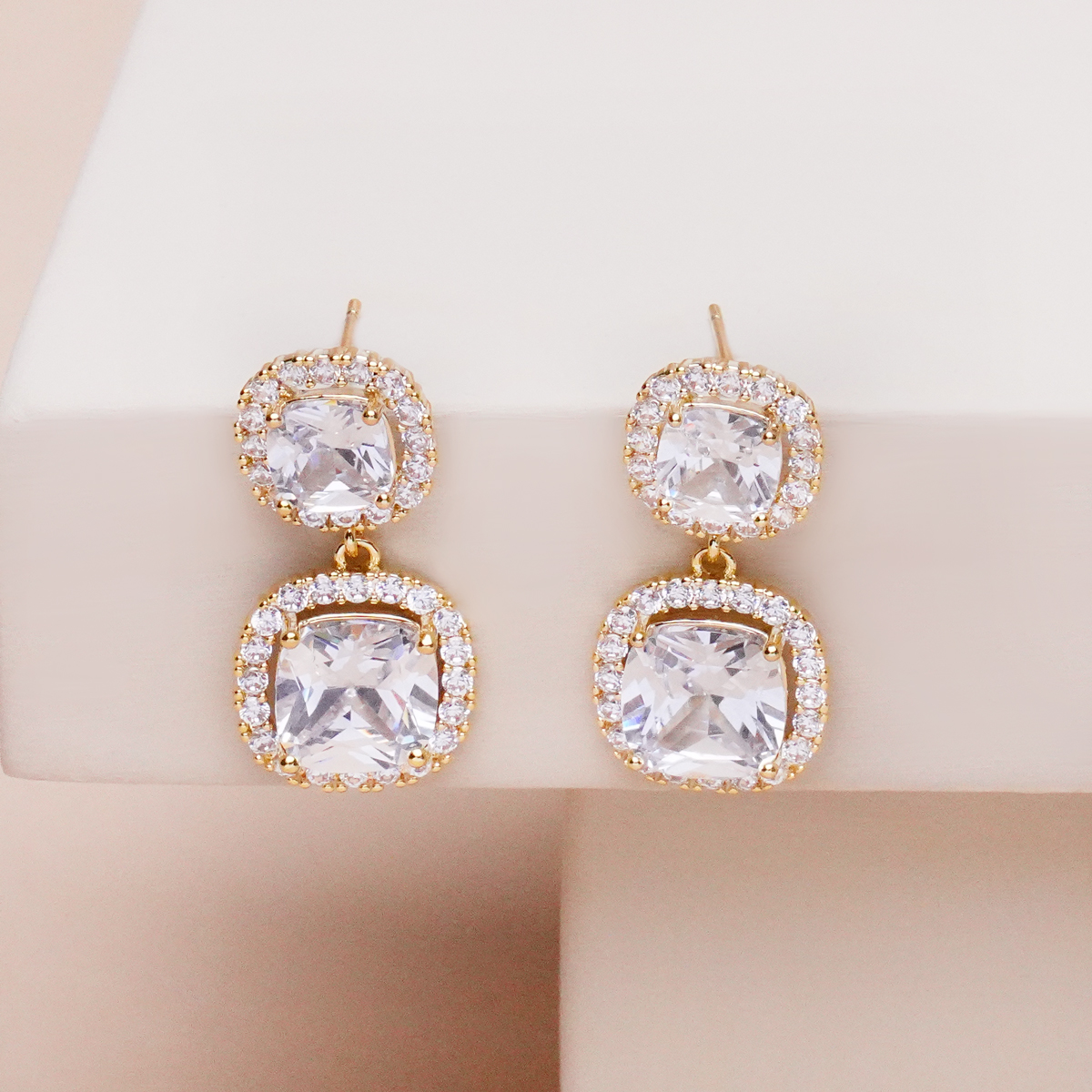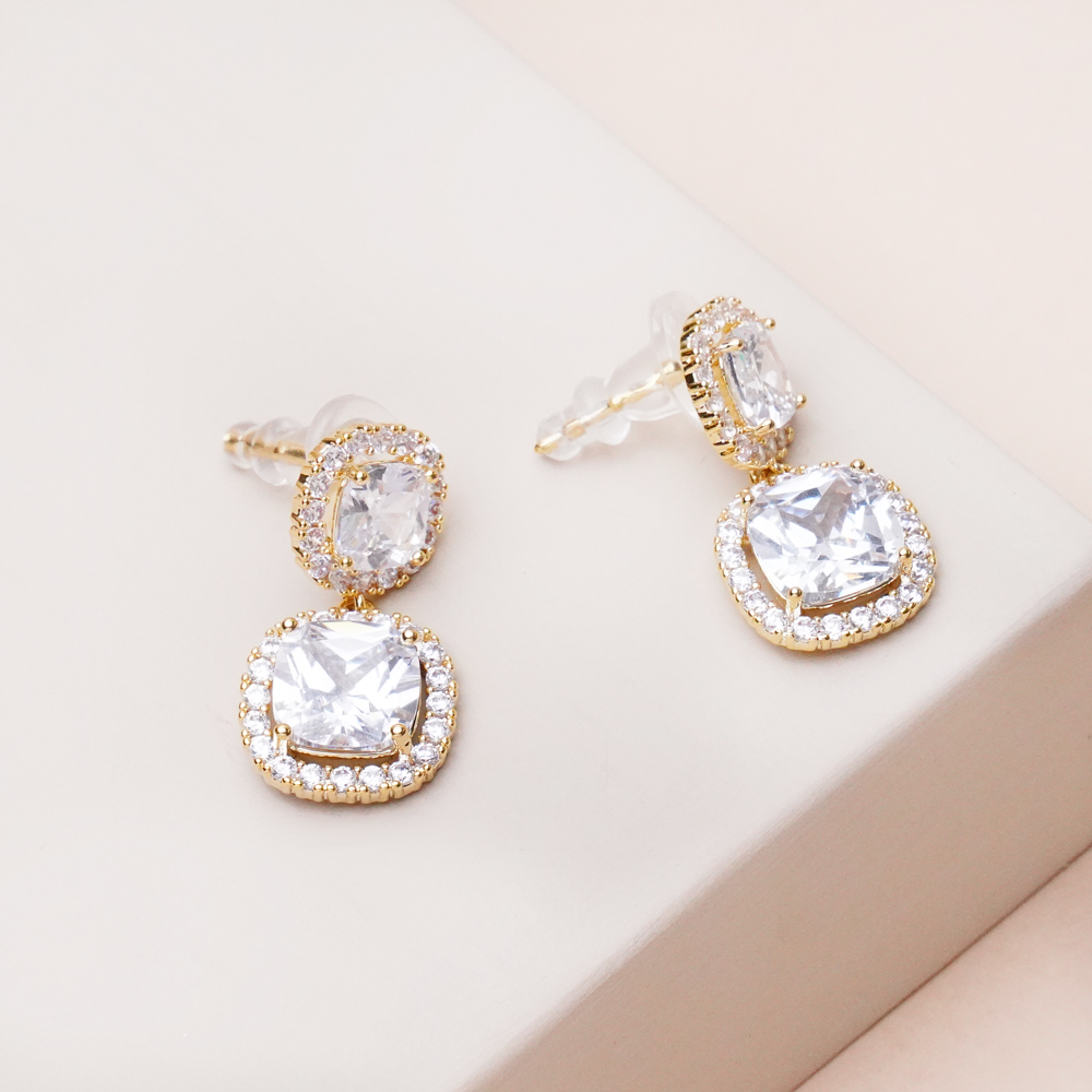 گوشواره جواهری دو نگین طلایی با طراحی ظریف و درخشان، انتخابی شیک برای استایلهای مینیمال و مجلسی است. قرارگیری دو نگین براق در کنار هم، جلوهای چشمنواز و متعادل ایجاد کرده که در نور بهزیبایی میدرخشد و ظاهری ظریف اما تاثیرگذار به گوش میبخشد.