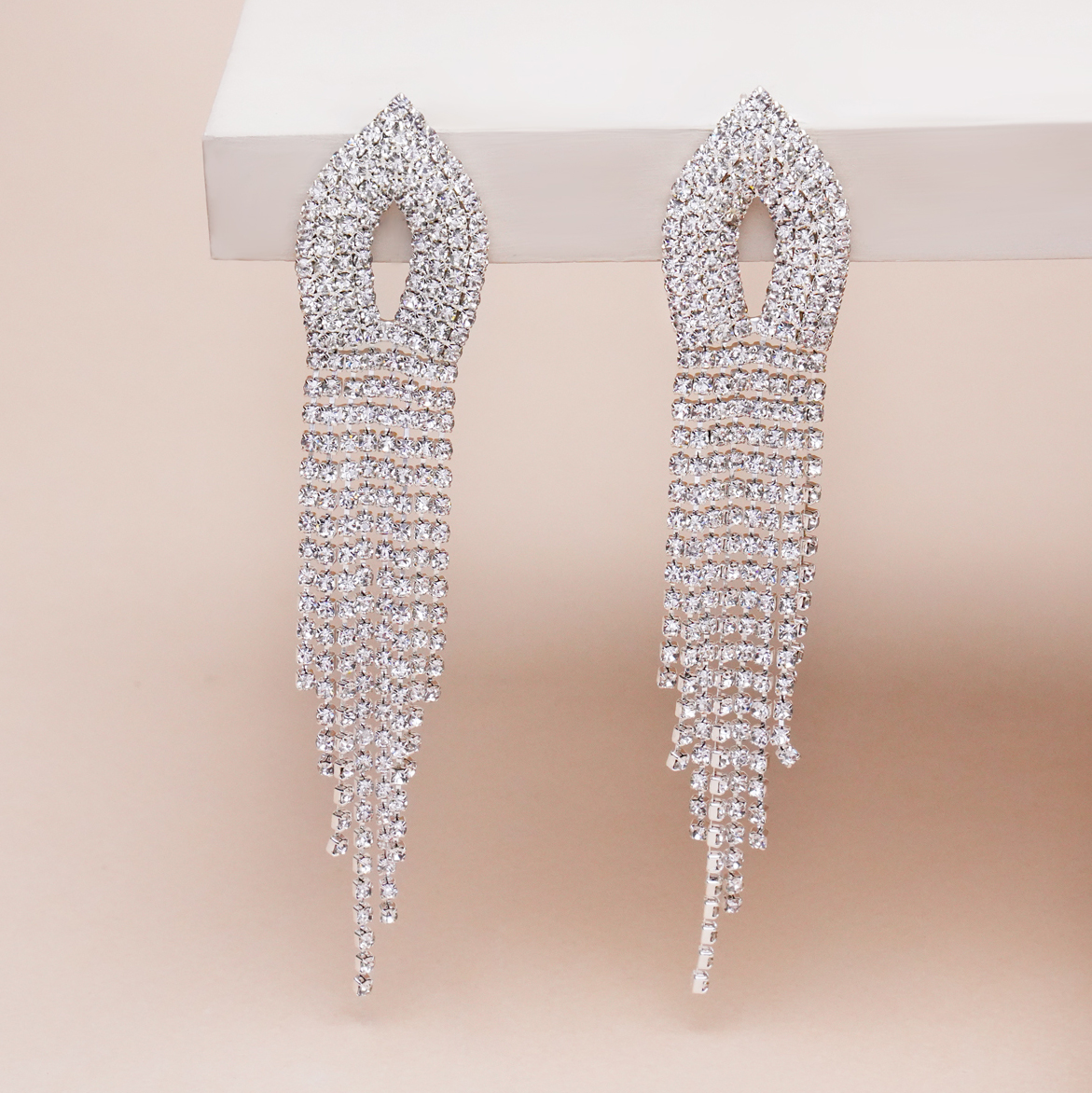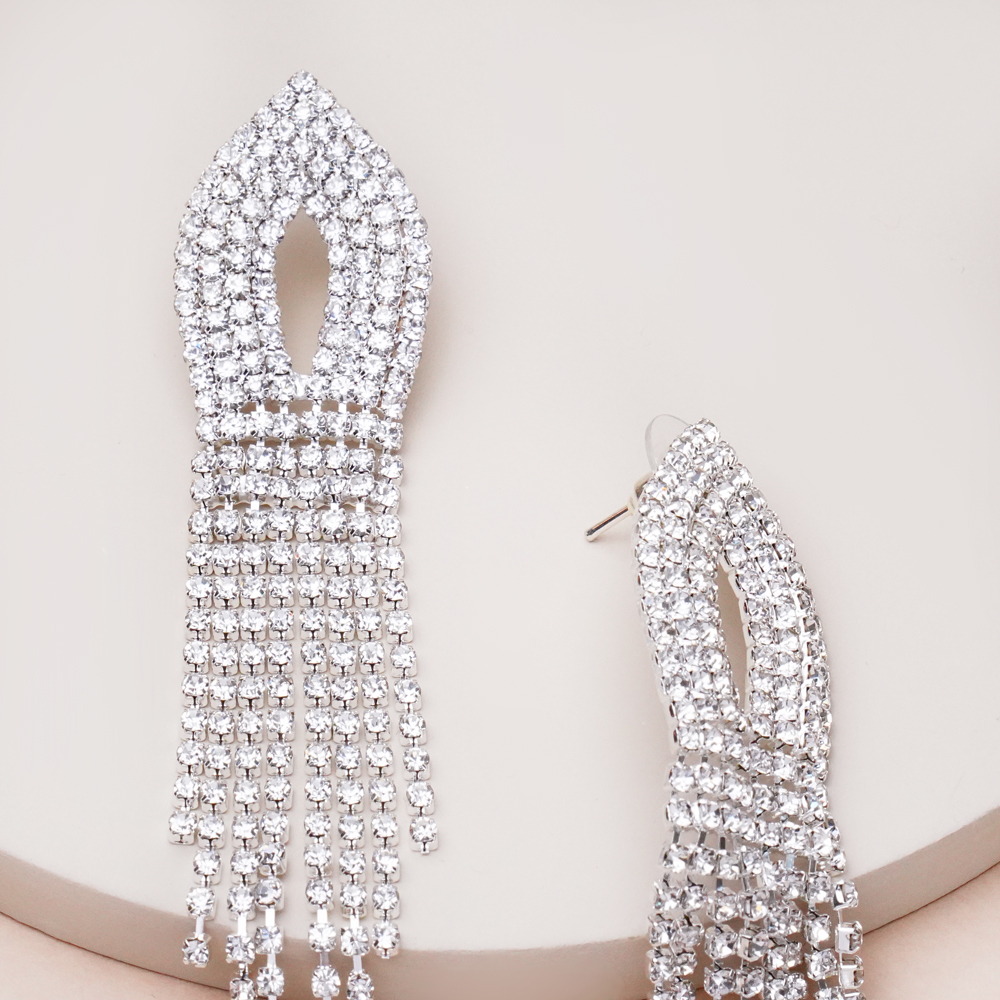 گوشواره جواهری لوزی آویز بلند