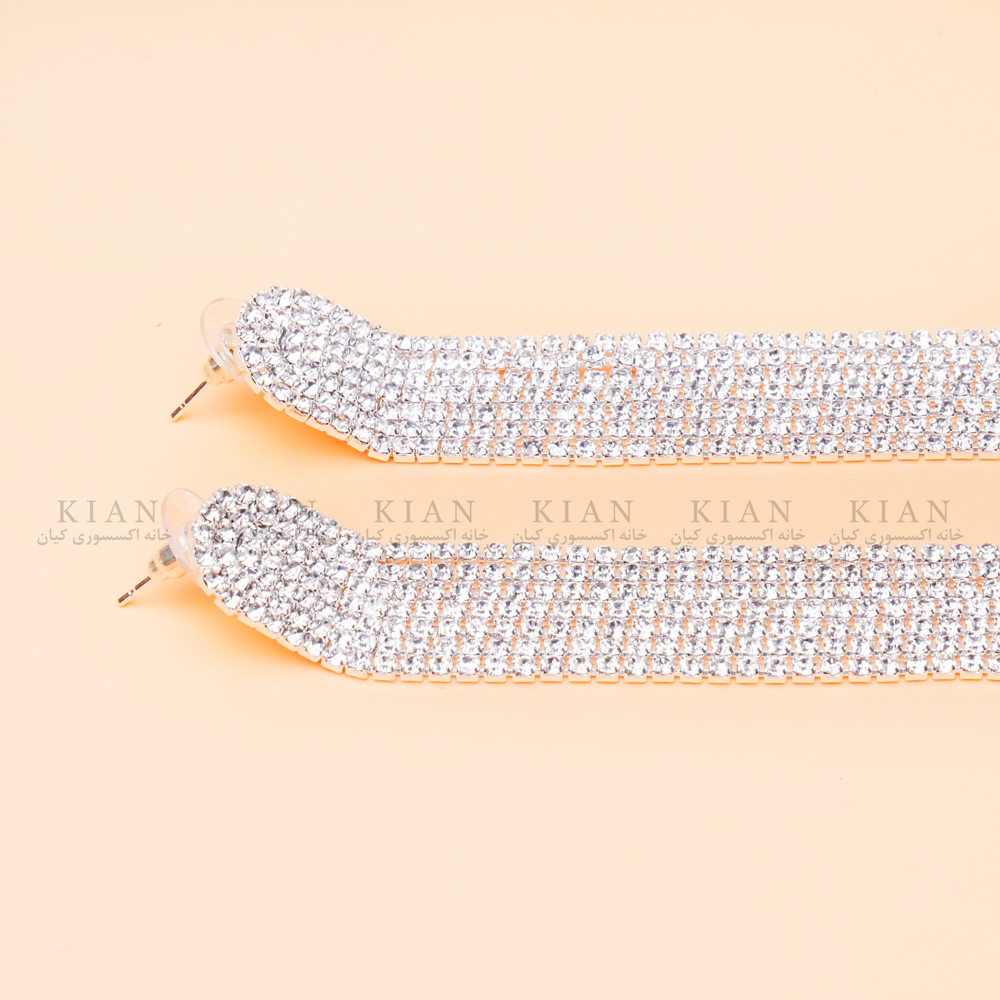 گوشواره جواهری نیم دایره با طراحی خاص و درخشش نگین های ریز، انتخابی لوکس و چشمگیر برای استایل های زنانه است. فرم نیم دایره و آویزی این گوشواره جلوه ای مدرن و شیک ایجاد می کند و مناسب مجالس رسمی و مهمانی هاست. این مدل زیبا و پرطرفدار را می توانید از خانه اکسسوری کیان با کیفیت بالا و قیمت مناسب تهیه کنید.