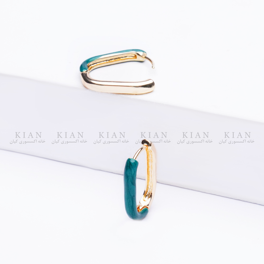 گوشواره سبز طلایی از مجموعه ی خاص خانه اکسسوری کیان، ترکیبی شیک از رنگ سبز براق و طلایی در طراحی ای منحصر به فرد و چشم گیر است.