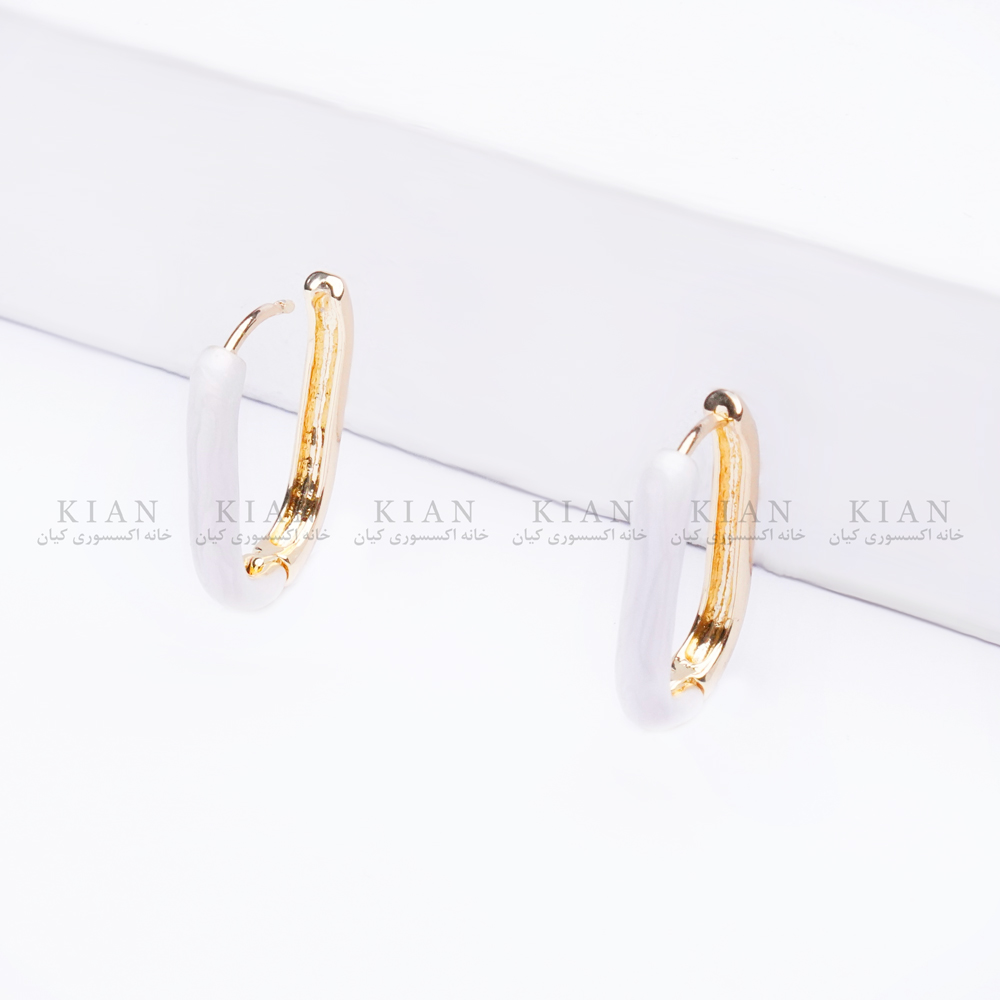 گوشواره سفید طلایی از مجموعه ی خاص خانه اکسسوری کیان، ترکیبی شیک از رنگ سفید براق و طلایی در طراحی ای منحصر به فرد و چشم گیر است.