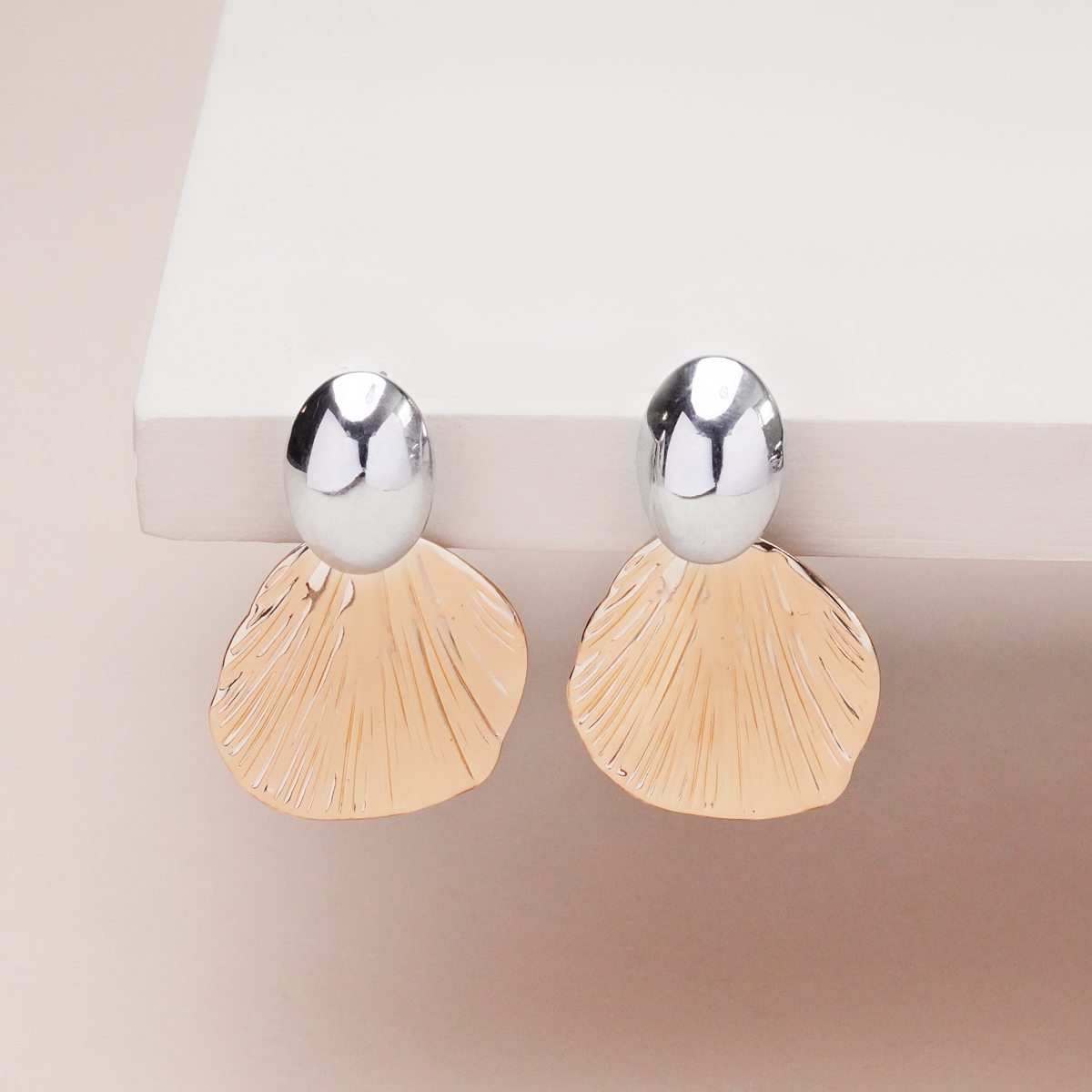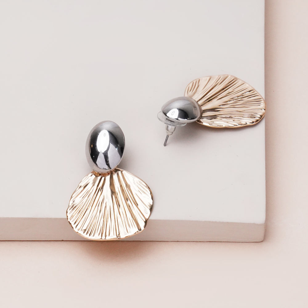 گوشواره صدف شیاردار طلایی با طراحی الهامگرفته از بافت طبیعی صدف و خطوط شیاردار منظم، جلوهای خاص و متفاوت به استایل شما میبخشد. ترکیب بافت مات و درخشش ملایم رنگ طلایی، حس لوکس و ظریفی ایجاد میکند که بهراحتی در نگاه اول توجه را جلب میکند.