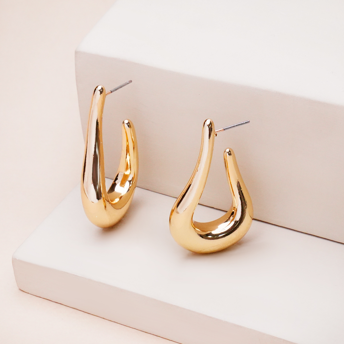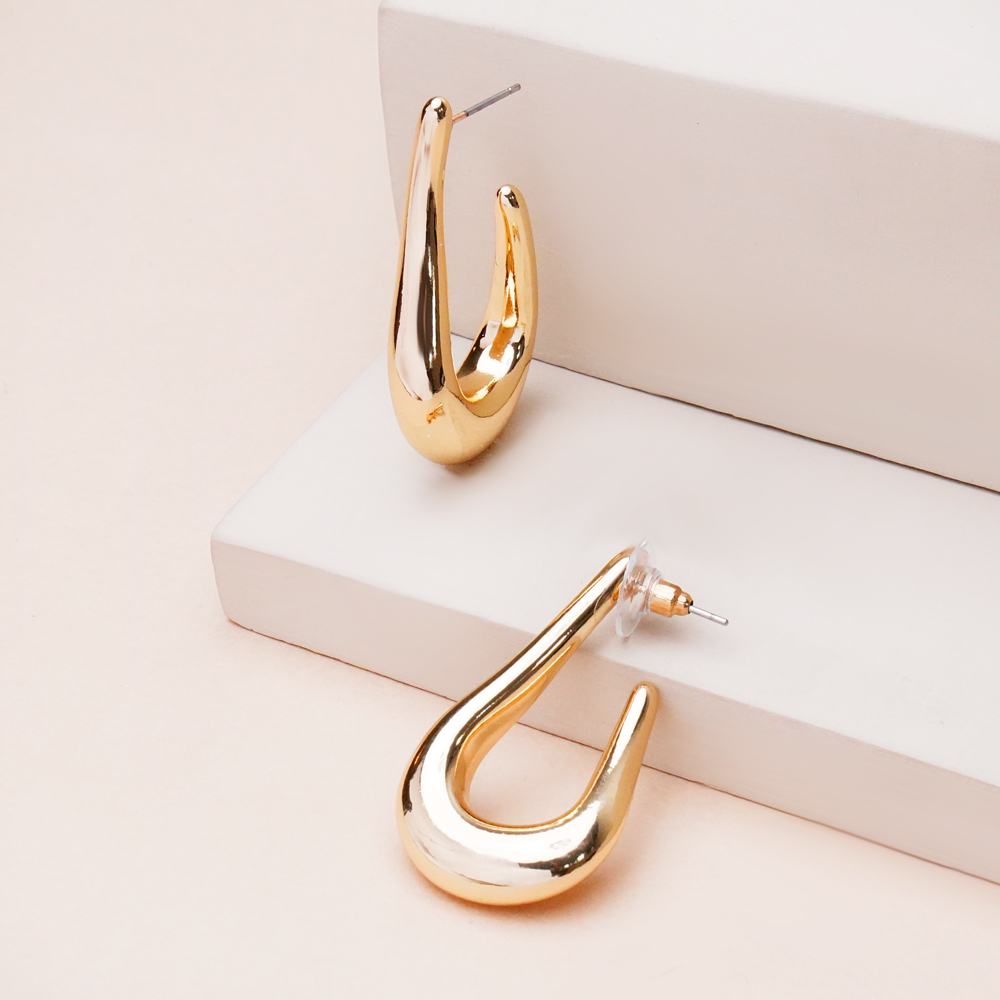 گوشواره قطره موجدار طلایی با فرمی هنری و سیال، تجسمی از ظرافت و حرکت در دنیای اکسسوری است. منحنی‌های نرم و طراحی ارگانیک این مدل، تلالو خیره‌کننده‌ای به رنگ طلایی بخشیده و جلوه‌ای مدرن و در عین حال زنانه به استایل شما اضافه می‌کند. این محصول از کالکشن زیورآلات خانه اکسسوری کیان با طراحی منحصربه‌فرد و کیفیتی بی‌نظیر، انتخابی ایده‌آل برای کسانی است که به دنبال درخشش در جزئیات و تفاوت در انتخاب‌های خود هستند.