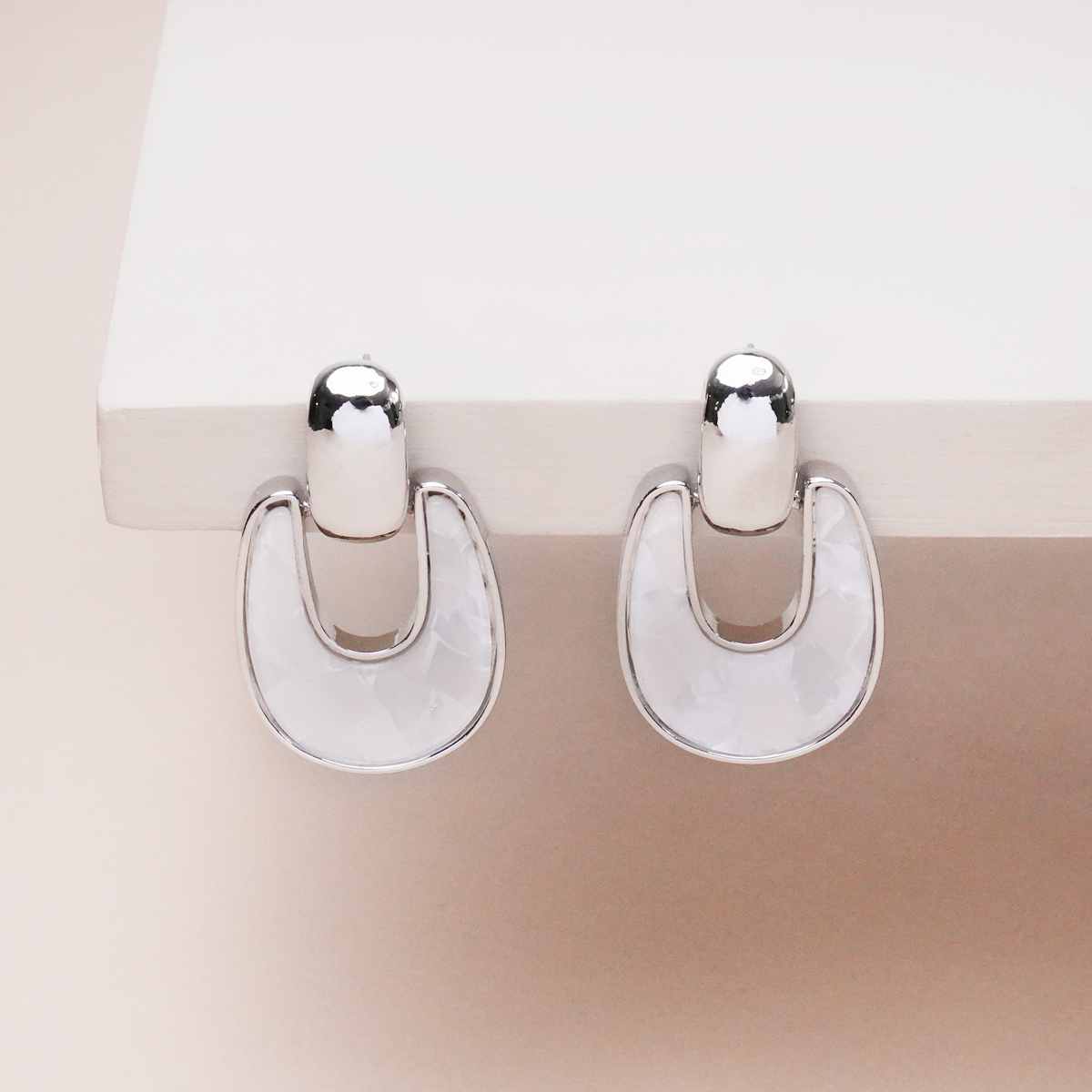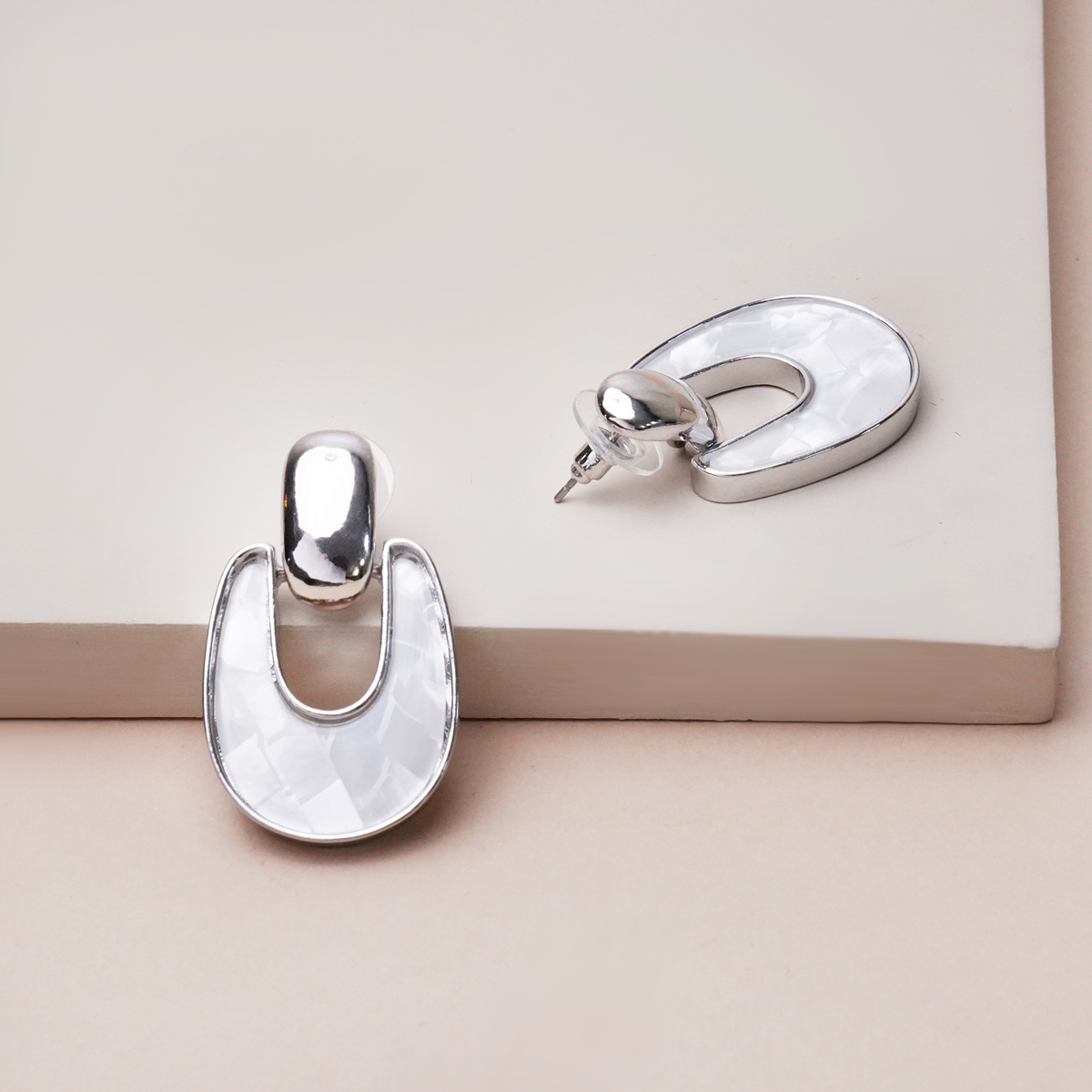 گوشواره نقره ای نعلی با طراحی کلاسیک و الهامگرفته از فرم نیمدایره، انتخابی شیک و همیشهمد برای تکمیل استایل شماست. فرم نعلی در کنار رنگ نقره ای براق، جلوهای ظریف و در عین حال چشمگیر ایجاد کرده که بهراحتی با استایلهای روزمره و مجلسی هماهنگ میشود.